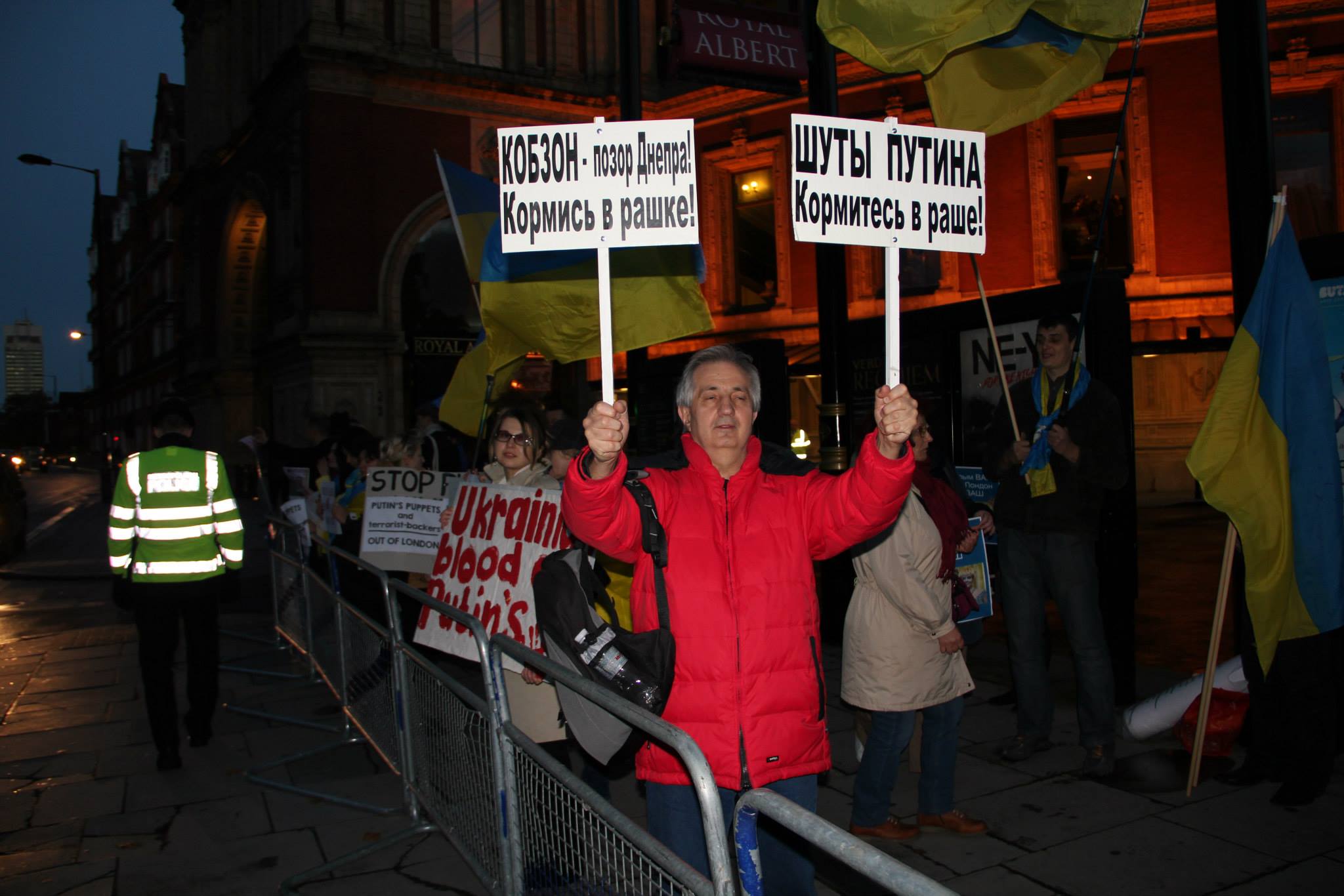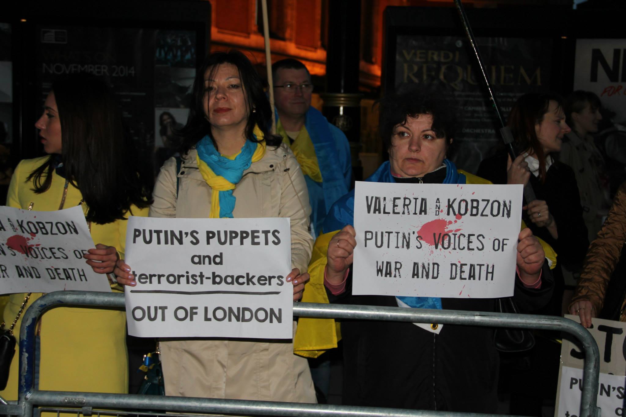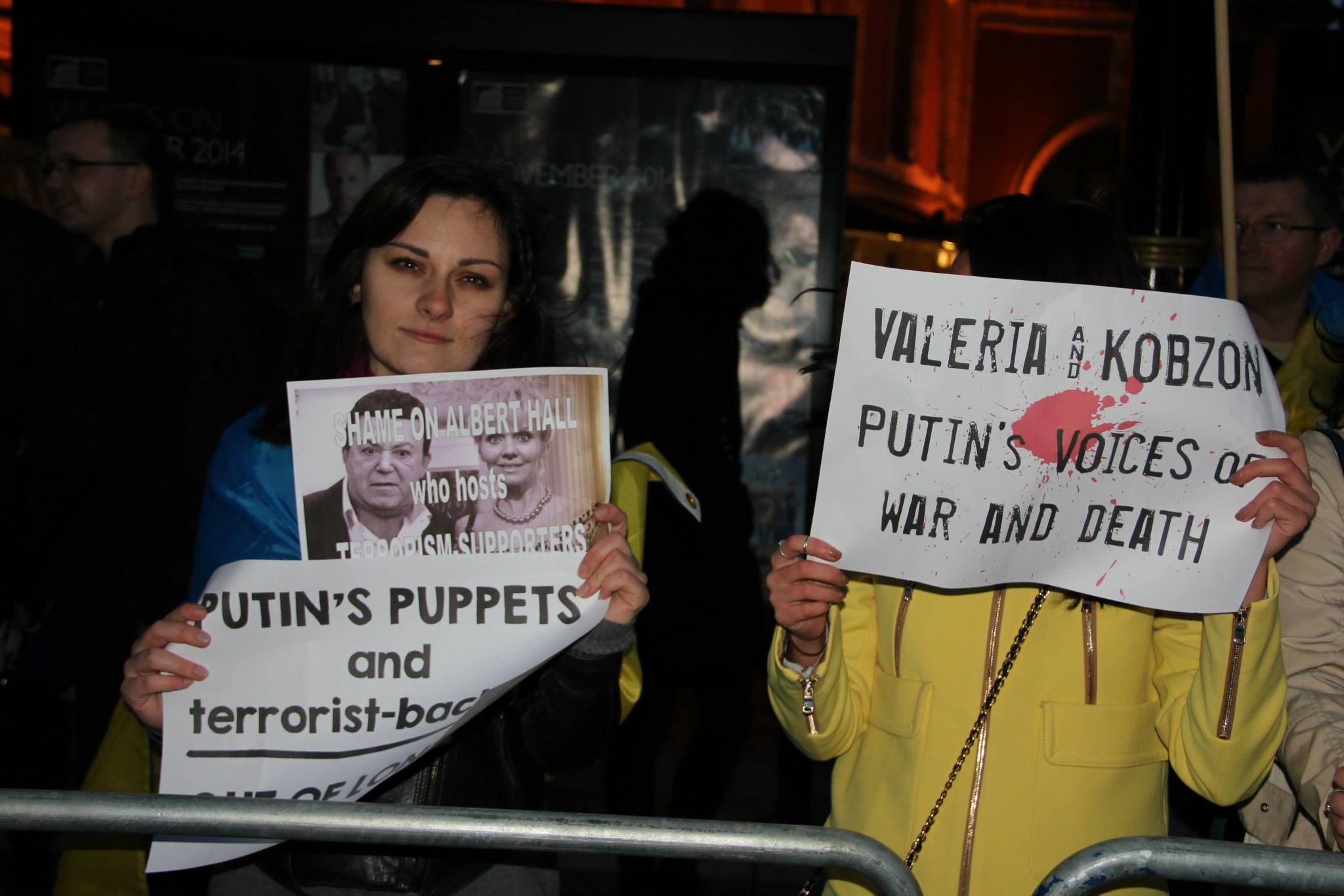 Protesters chanted: "Bloody voices out of London"; "Putin's puppets out of Lonfon"; "Valeria, Go home"; "Royal Albert Hall - Shame on you".