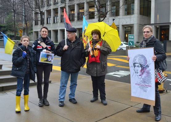 On Monday, she writes, the Ukrainian diaspora in the American state of Washington organized the latest in what has been a series of protests at the Russian consulate general in Seattle calling for the liberation of Ukrainian flier Nadiya Savchenko who is being illegally held in Moscow and whose detention has just be extended.