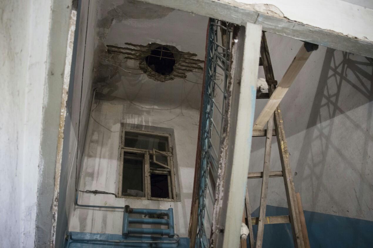 A three-storey house, pierced by a missile. A doll and a women's handbag lost close to missile crater, dozens of mutilated people in hospital beds, who do not ask for aid, who ask for peace.