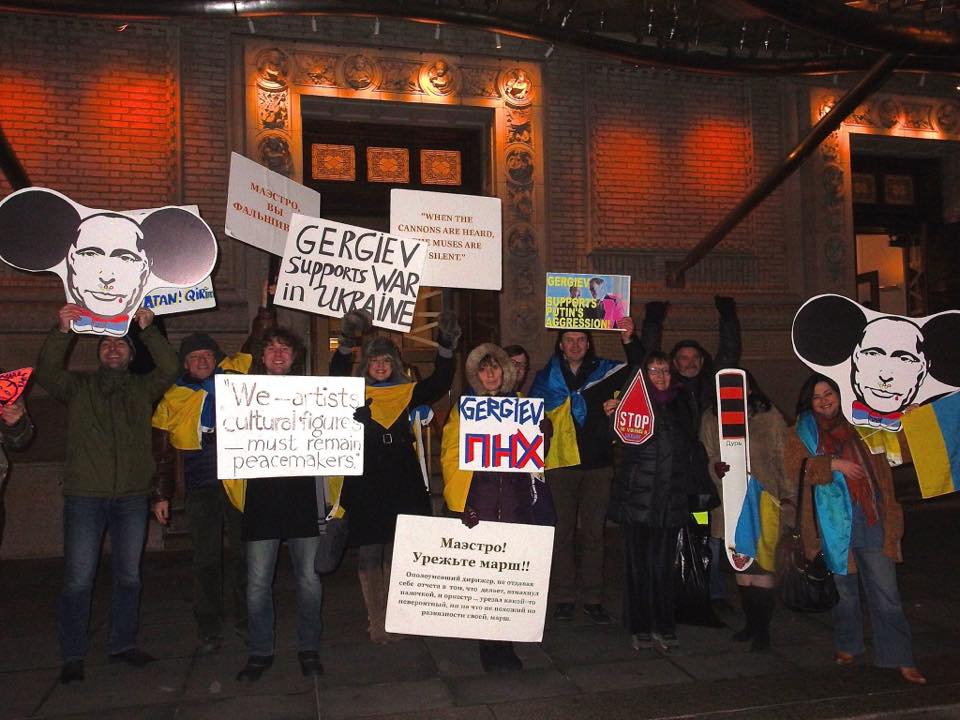 Over a year, we have staged protests against world-known musicians - conductor Valery Gergiev, pianist Denis Matsuev, violinist Vladimir Spivakov, saxophonist Igor Butman, soprano Hibla Gerzmava. There is one thing that unites them: they signed a collective letter in support of Russia's military aggression against Ukraine and the annexation of Crimea. In this letter that was published by the Russian Ministry of Culture on March 11, 2014, the artists state: "We firmly express support for the position of the President of the Russian Federation on Ukraine and Crimea."
