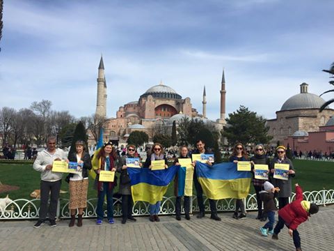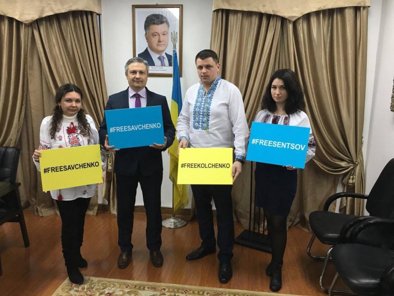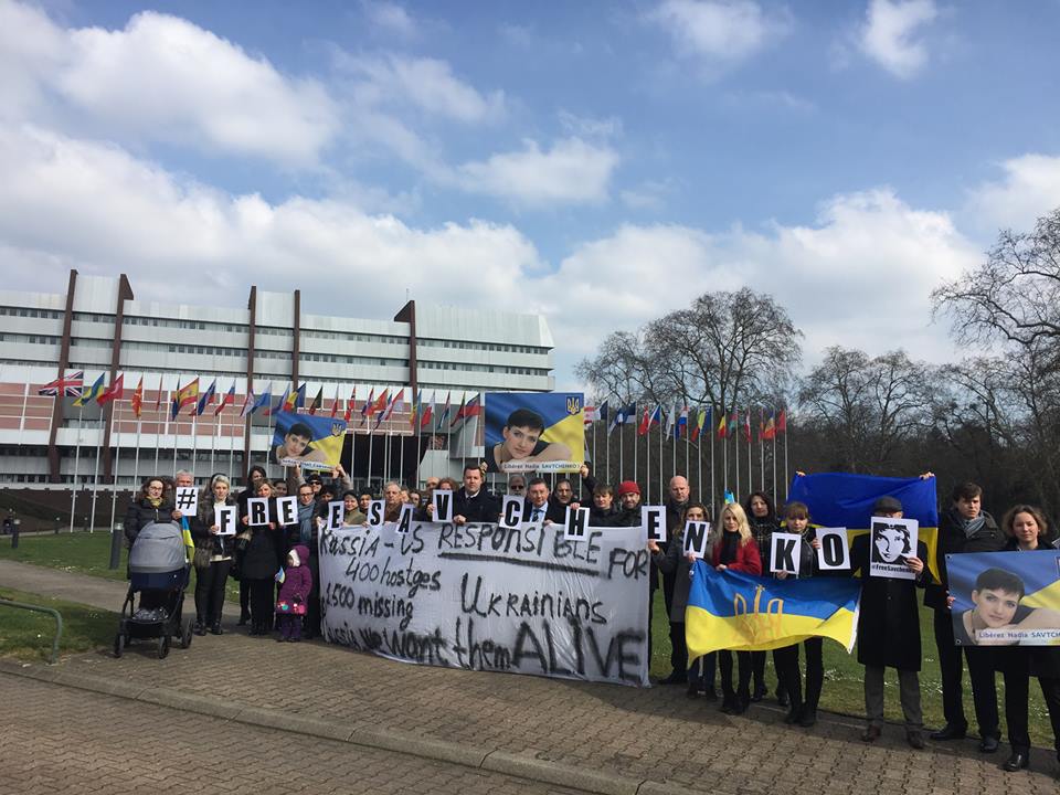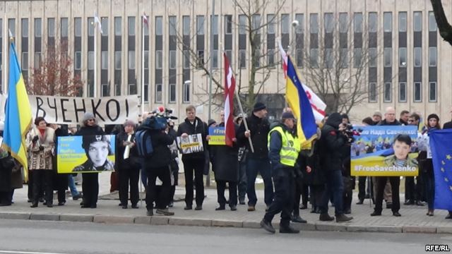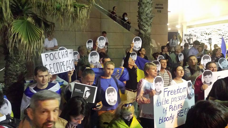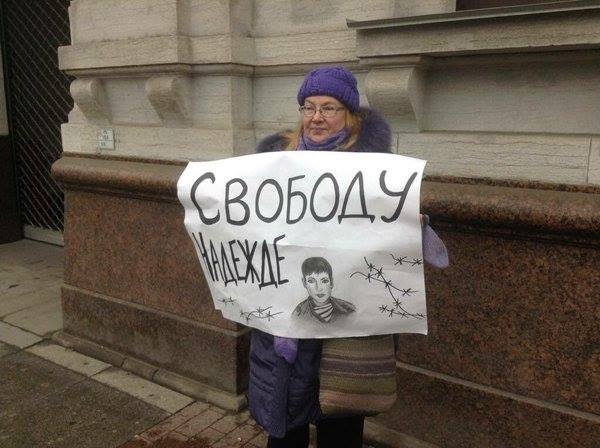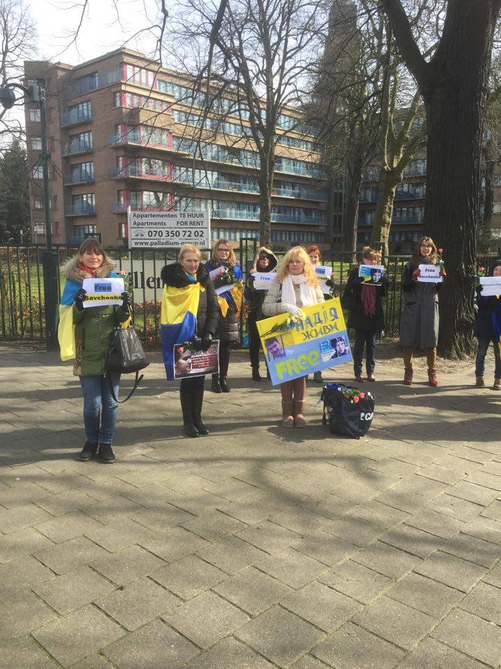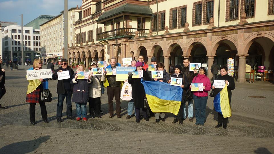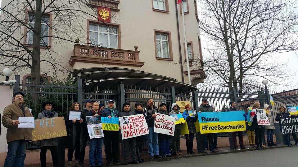 Activists in Limassol (Cyprus), Hamburg, Berlin, Bochum, Dusseldorf, Hamburg, Munich, Leipzig, Kassel (Germany), Antwerp (Belgium), Athens (Greece), Bratislava (Slovakia), Brussels (Belgium), Budapest (Hungary), Bucharest (Romania), Geneve (Switzerland), Gothenburg, Stockholm (Sweden), Haague (Netherlands), Krakiv, Warsaw (Poland), Marseille, Lion, Paris, Strassburg (France), Milan, Rome (Italy), Minsk (Belarus), London (Great Britain), Lisboa (Portugal), Madrid (Spain), Oslo (Norway), Prague (Czech Republic), Sofia (Bulgaria), Vienna (Austria) came out, mainly to Russian embassies and consulates, to demand the release of Nadiya Savchenko.