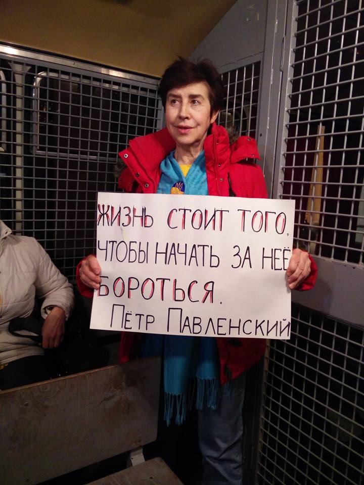 A series of pickets and rallies took place across Russia. Traditionally, their participants were detained and fined. At least 39 people were detained in Moscow and after undergoing trials fined as much as RUB 20,000 ($286, which is more than half the average Russian monthly salary). Knowing that they would be arrested and fined, they were not intimidated and still came out to protest in defense of an innocent woman. Despite individual pickets being allowed, picketers were arrested also, for standing closer than the allowed 50 m. You can watch the police arresting the activists in Moscow and St.Petersburg below: