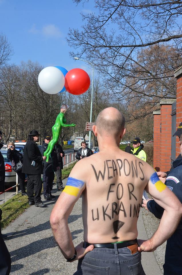 "It was time to give Russia its green men back, be it the anonymous ones or the prominent ones, such as Miloš Zeman," the protesters said.