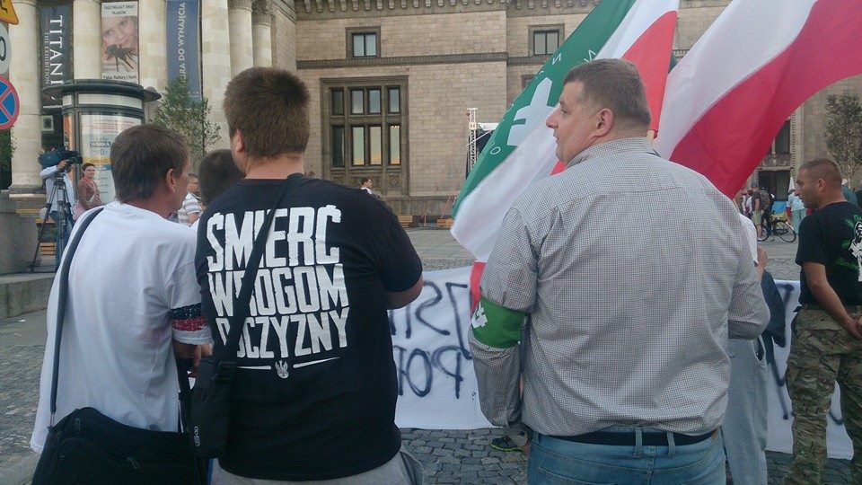 Tyma, who was present during the clashes, said that some of the attackers wore T-shirts of the nationalistic All-Polish Youth organization and were shouting offensive slogans. Another witness that the Polish Radio quoted told about local hooligans, so-called preudo-football fans, as well as persons that self-identify with the nationalistic groups. They were holding posters saying “Banderovites and their supporters – out of Poland!”.