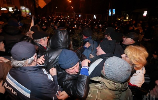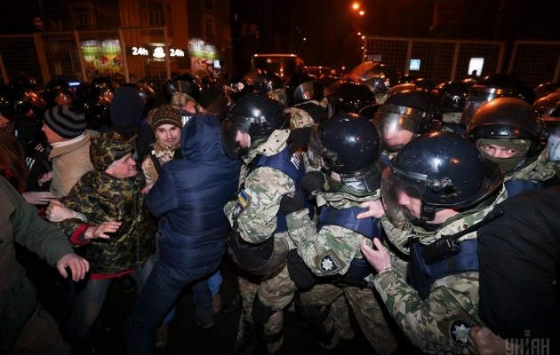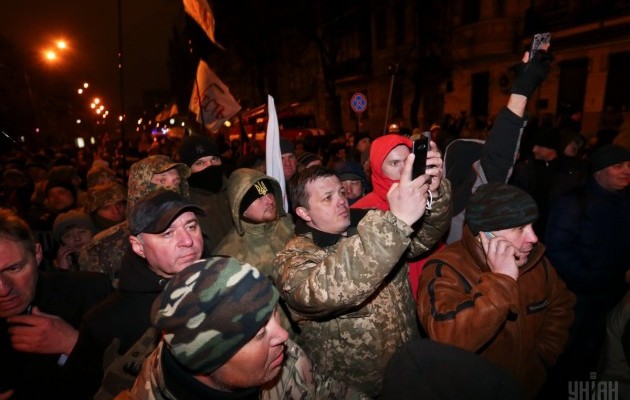 The rally was led by MPs Yehor Sobolyev and Semen Semenchenko, who organized the railway trade blockade in Donbas, and the head of the Organization of Ukrainian Nationalists (OUN) Mykola Kokhanivskyi. The latter was detained during an attempt to break through the police cordon.