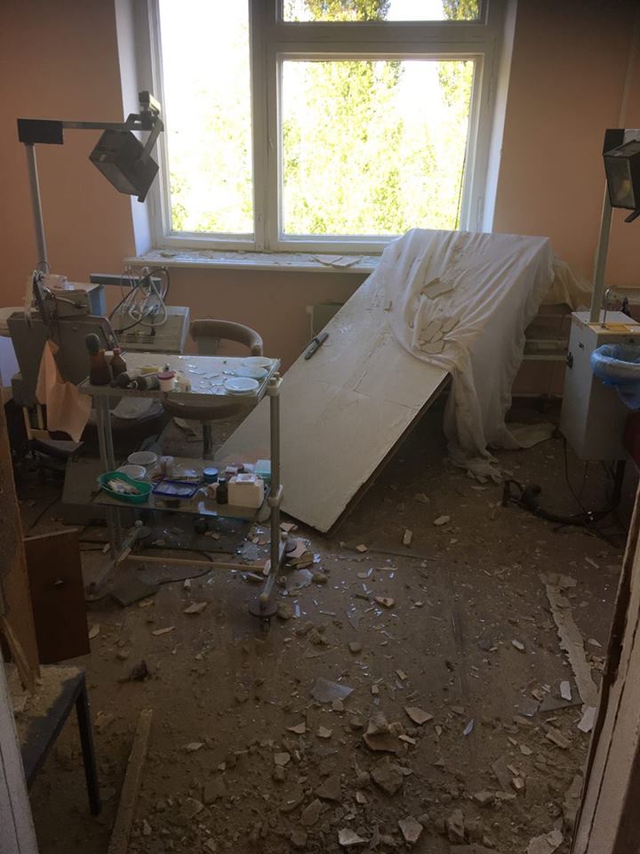That attack was not unique. The same hospital damaged in 28 May attack was already hit a few days ago on 25 May, the OSCE SMM observed the same two meters-deep craters, assessing them as caused by 152mm rounds, as far as damage caused by 122mm artillery.