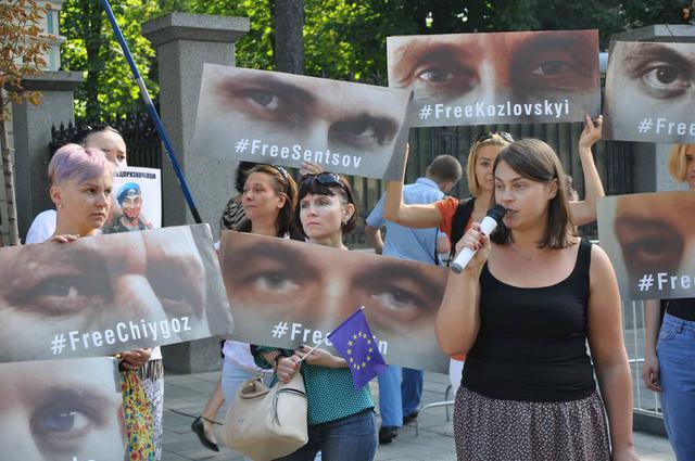 Photos: activists, relatives of Ukrainian political prisoners in Russia and prisoners of war in Donbas urge government leaders to work more towards facilitating their release at a meeting of the EU-Ukraine summit in Kyiv on 13 July 2017. Photos: Oleh Bogachuk, censor.net.ua