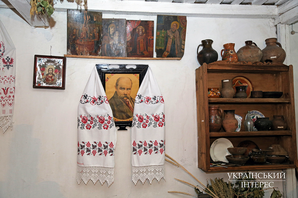 Today, the museum houses more than 6,000 exhibits. Students from all over the region come regularly to visit the museum. There are also guests from abroad. When Halyna begins the tour, her eyes glow with happiness. She recounts the history of her town and region, recalling interesting historical facts. When we enter the Taras Shevchenko Room, she begins to recite his poems by heart. She tells us that the great Ukrainian poet visited Berezan twice. It was here that he wrote his great poem “Розрита могила” (The Excavated Mound) in 1843. The museum also has books by Shevchenko, rushnyky embroidered with lines from his poems, and portraits made mostly by folk craftsmen.