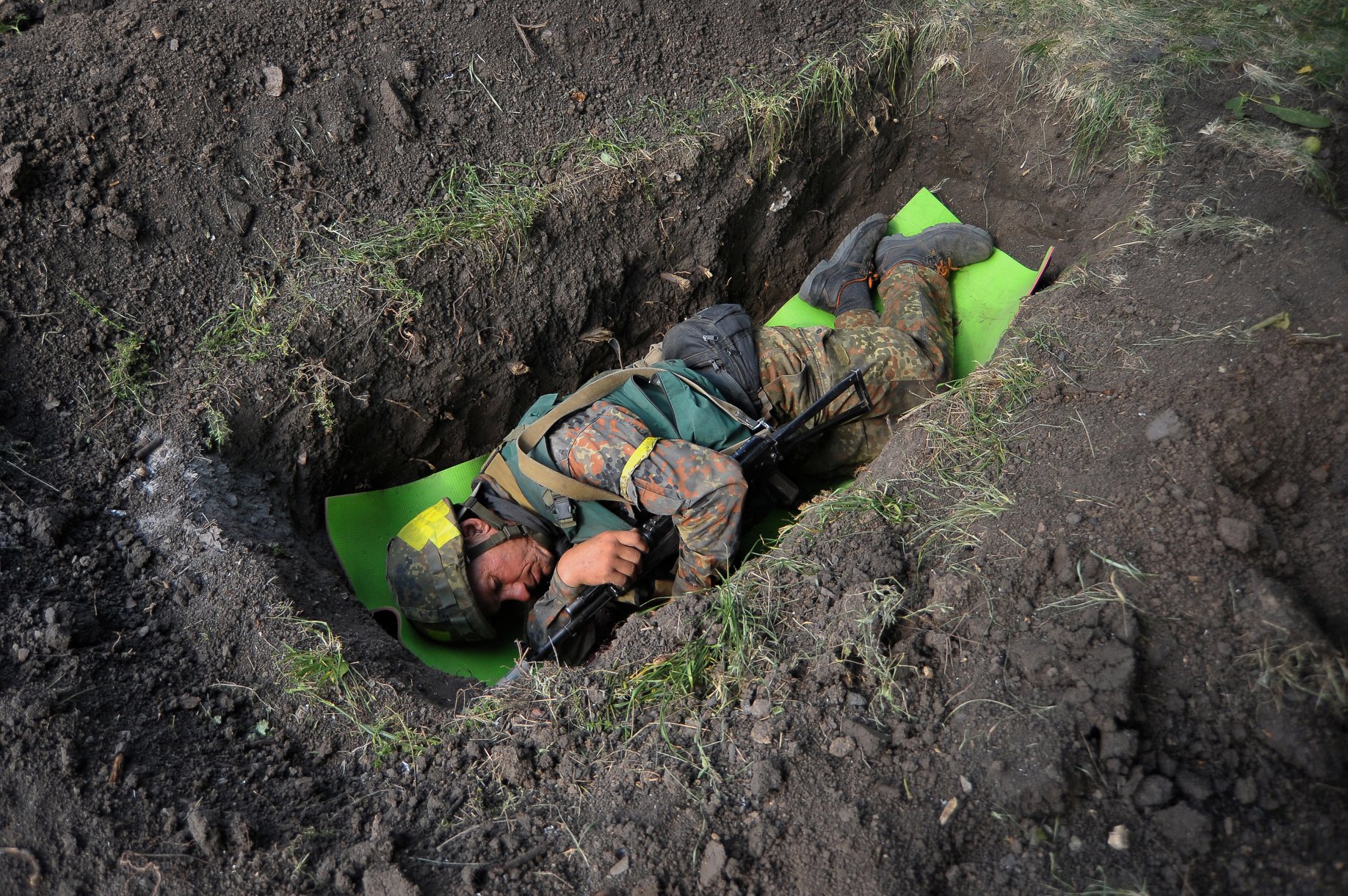 We arrive at Kuteinykove at the rendezvous location. We unload the vehicles, lie in the shade, and some even fall asleep. The more experienced men share their thoughts with us. Andriukha (Berkut) and Romka (Zmiy) tell us that two days ago they had tried to enter Ilovaisk only to find it was extremely well-defended. At the entrance to the city there were fortifications, and on these defences were mounted mortars and grenade launchers, all operated by trained specialists.