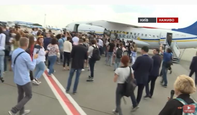 The airplane carrying the released Ukrainians touched down at Boryspil airport at 13.45. Ukrainian officials, including President Volodymyr Zelenskyy, journalists, and relatives of the prisoners gathered before