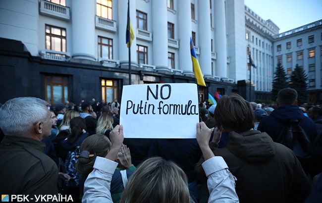 "...not to sign capitulation agreements with Putin, by all means to not implement Steinmeier's formula, to not agree to legalize the pro-Russian autonomy of Donbas and amnesty for militants. We demand that the war in Donbas be resolved in this order: