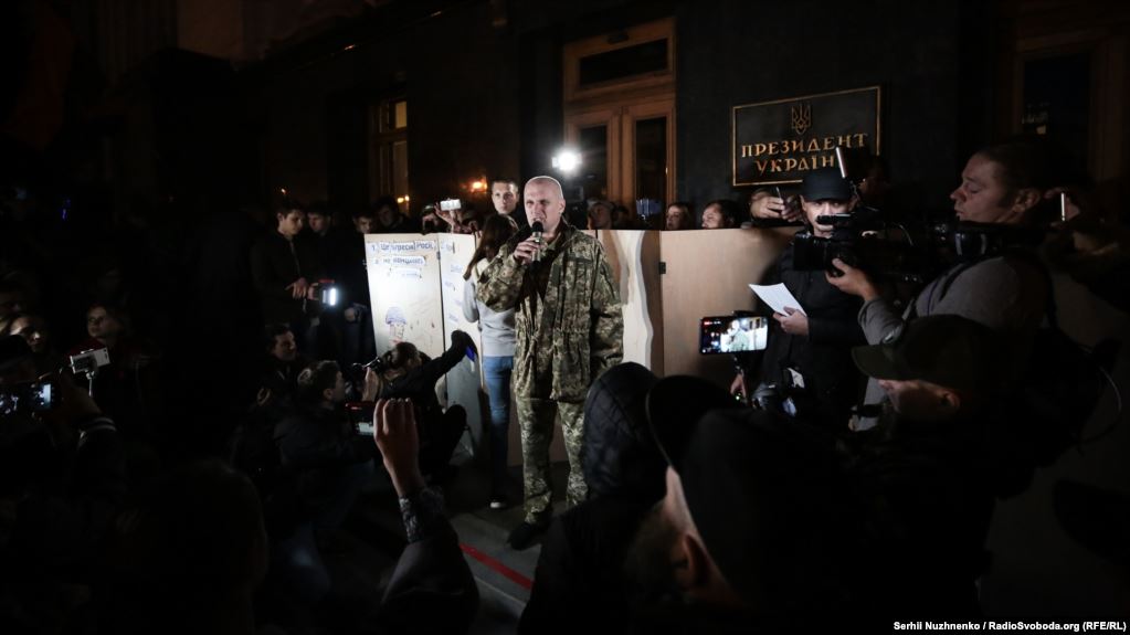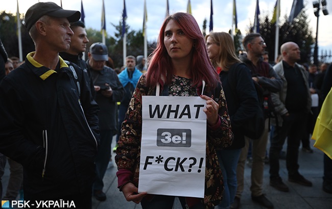 "The Normandy conspiracy: state treason!" protest at the President's Office in Kyiv on 19 September 2019. Photos: rbc.ua, radiosvoboda.org, ukrinform.ua