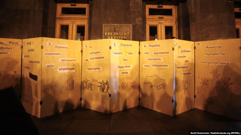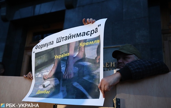 "...not to sign capitulation agreements with Putin, by all means to not implement Steinmeier's formula, to not agree to legalize the pro-Russian autonomy of Donbas and amnesty for militants. We demand that the war in Donbas be resolved in this order: