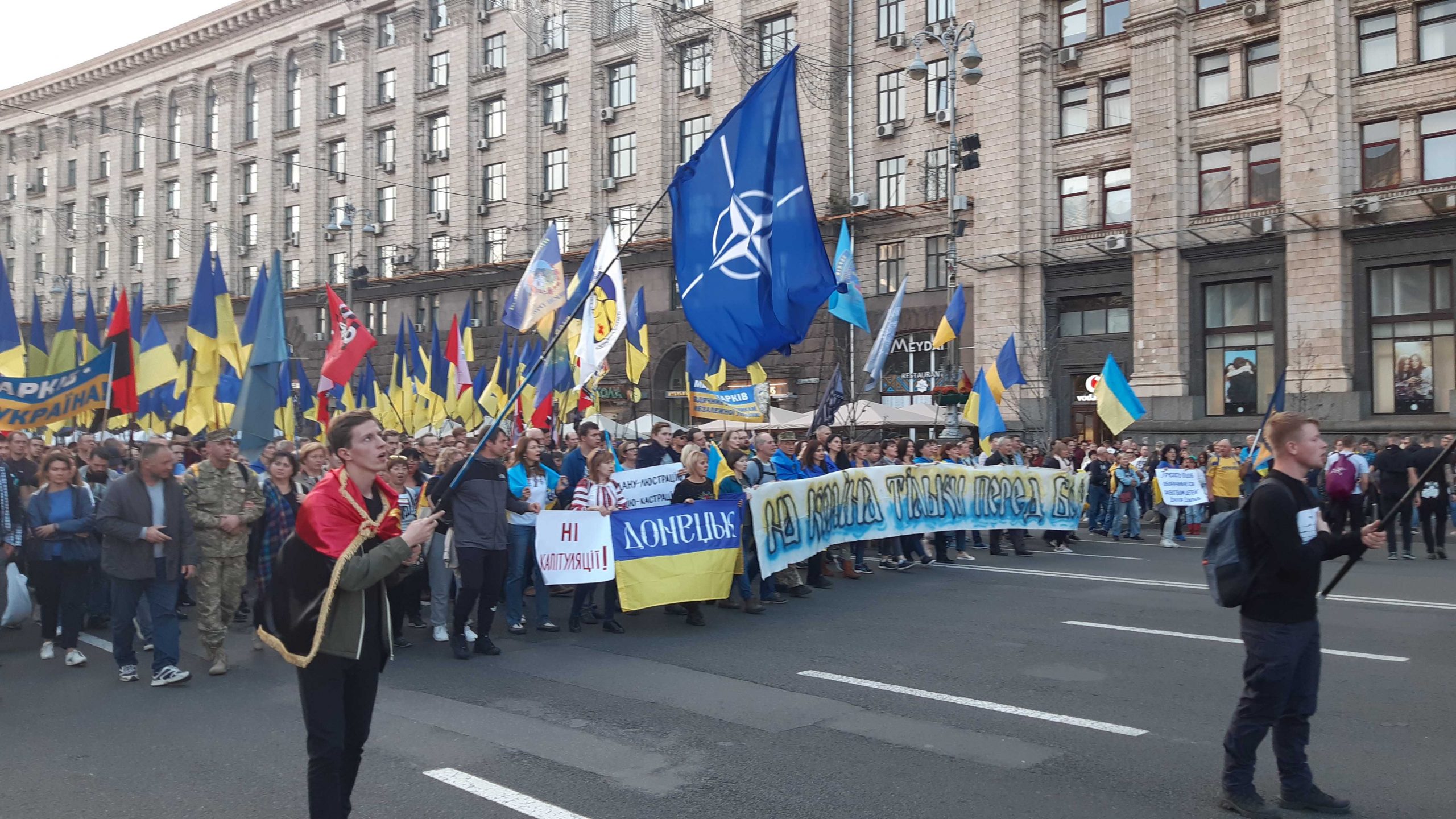The problem is that all these things, including the withdrawal of Ukrainian troops from the contact line, are part of the 2015 variant of the Minsk Protocol, a non-binding agreement called to end the war in Donbas. As correspondents of Hromadske TV revealed, most participants of the march who considered these things Ukraine's capitulation, were either unaware that they were part of the Protocol or hoped they would not be implemented. For years of Poroshenko's presidency, Ukraine had insisted that the security part of the Minsk Protocol be implemented first and pursued a pro-Ukrainian reading of the agreement - that there would be no permanent special status and that amnesty would not be granted to those having committed war crimes.