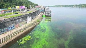 When speaking of Ukraine’s Dnipro River, many activists sadly assert that the legendary river only sighs and groans… and roars no more. Dmytro Nadieyev, head of the public organization “Chysty Dnipro” (Clean Dnipro), says that the state of the Dnipro River is critical and points to four major problems: First – shoaling, which occurs as a result of solid runoff from tributaries such as the Desna River, Prytpiat River,etc. The Fishermen’s Association of Ukraine has counted 55 shoal banks in the Dnipro River. When a river silts up, more low-flow zones appear, thus leading to stagnant waters. Second - water bloom (dense aquatic population of microscopic photosynthetic organisms produced by an abundance of nutrient salts in surface water, coupled with adequate sunlight for photosynthesis-Ed). Our planet is getting warmer and warmer every year. Detergents containing phosphates drain into the sewage system and enter the Dnipro, thus constituting a nutrient base for blue-green algae (cyanobacteria), which proliferate intensively along the river.