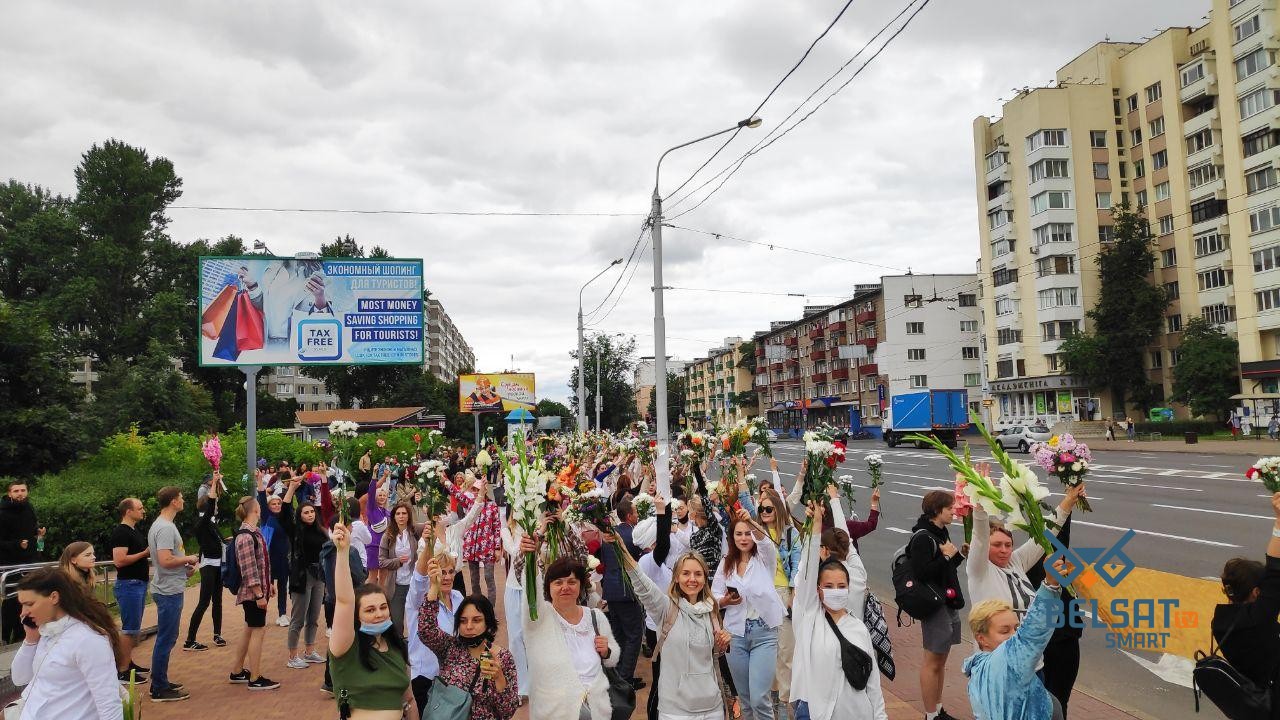 Two police officers tried to stop the demonstration, claiming it was not authorized. The women slowly turned around with their hands behind their heads, as if they were arrested, and walked in a column through Minsk. Then the movement spread to other cities throughout Belarus.