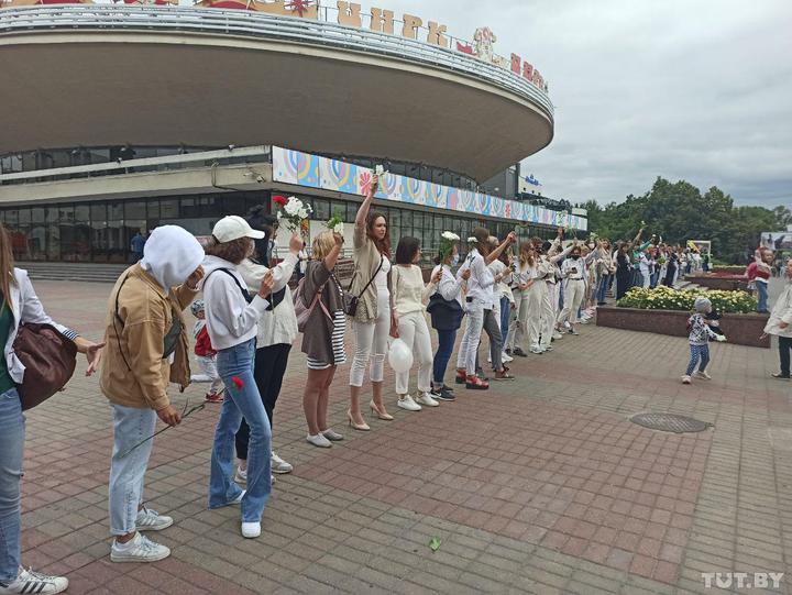 The first human chain formed by women wearing white clothes started on 12 August in central Minsk. Hundreds of women gathered next to the Minsk Komarovsky Market. Four central subway stations were closed in Minsk by the authorities “for safety reasons.” The internet was also shut down for some time. But this couldn’t stop participation in the protests. The rally soon spread throughout the country.