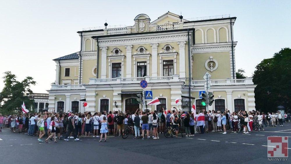 One of these early protests saw exactly that consequence. The troupe of the Minsk’s oldest and grandest Kupalauski theater took part in anti-government rallies. As a reprisal, theater director Paval Latushka was fired. The entire troupe then resigned in solidarity and carried out a vigorous outburst near the theater. They attracted hundreds of supporters who joined them.