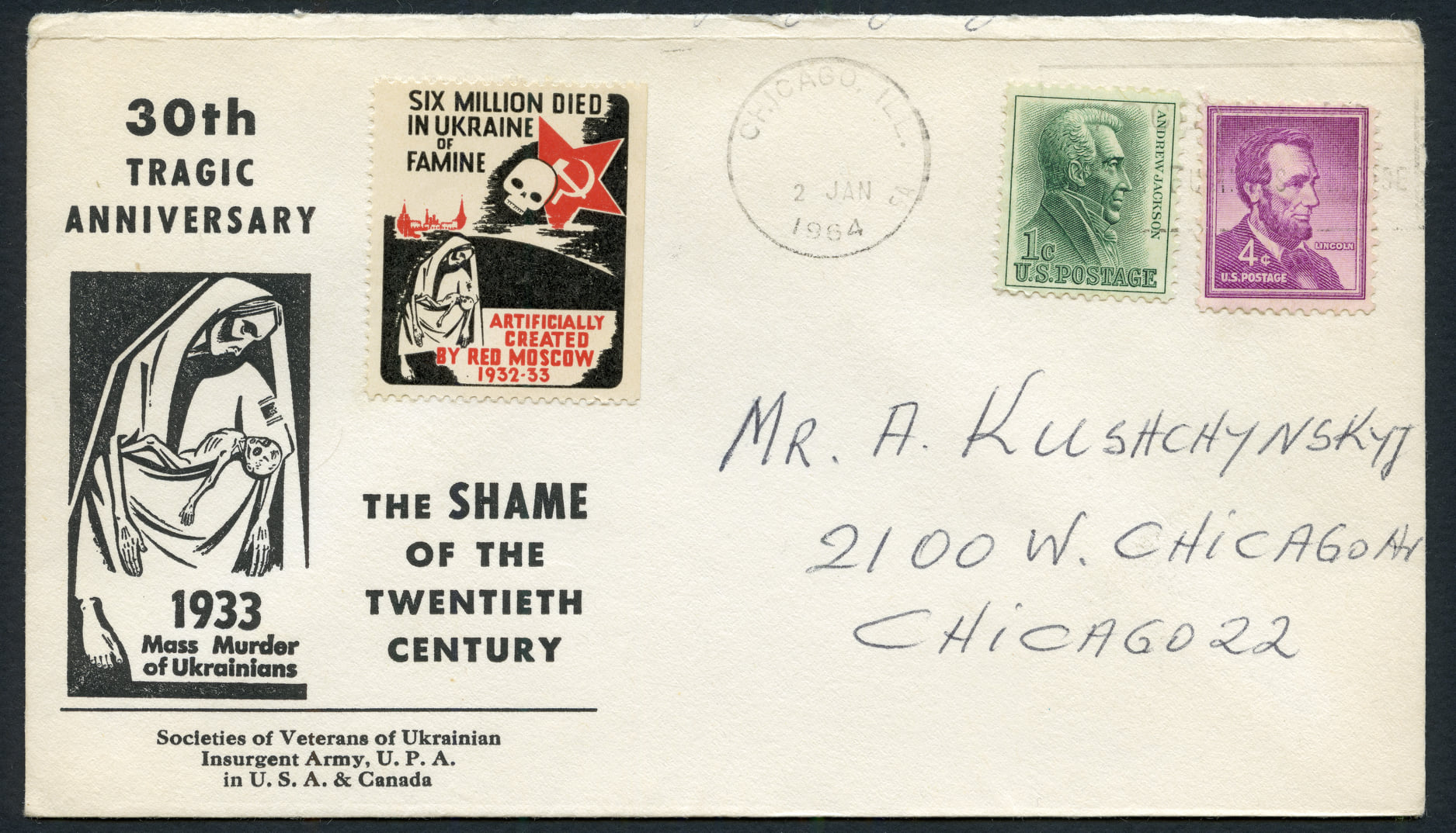 I sent much more material than was required for editors to be able to choose what suited their audience and the format of the publication best. The stamps, that I provided, ranged from cultural, Christmas, and PLAST (Ukrainian scout organization) themes to those criticizing the Soviet regime. Of course, among them were stamps about UPA (Ukrainian Insurgent Army during the Second World War and about 10 years after). The editor, in the end, chose a lot of politicized stamps as well as a loud and striking title for the publication.