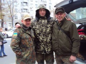 century. It seemed to us that that the Armed Forces of Ukraine would quickly deal with those illegal armed units. However, the summer brought open Russian aggression, Ilovaisk, and the threat of losing the southern part of Ukraine. Many Ukrainians, who were far removed from military service, were faced with the choice of taking up arms or negotiating with their conscience... convincing themselves that it was totally irresponsible to don a bulletproof vest and take up arms at such a late age, especially since those hands were used to holding the Bible. Trying to dispel the feeling of remorse when social media is overrun with photos of young men killed in the war. Andriy was not discouraged by the refusal of the military recruitment and enlistment office. Friends and relatives tried to persuade him to abandon his attempts to go East, told him to focus on volunteer activities. But, Andriy’s conscience bothered him; he became restless, and he finally made the ultimate decision to serve his country. He completed military training in Nizhyn and joined a unit of the OUN Battalion.
