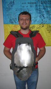 “There were at least ten of us. The metal plates were brought to the Palace, other elements were arranged in piles. The belts came in long rolls, which we cut to appropriate lengths and then, we assembled all the parts together.”-I believe we’re all familiar with the photo that shows 12-year-old Roman Saveliev from Yahotyn, Kyiv Oblast. Journalists called him the “Child of the Maidan” or the “Ukrainian Gavroche”. It was in such a homemade protective vest, made in Lviv, that Roman fought on the front line of the Maidan.