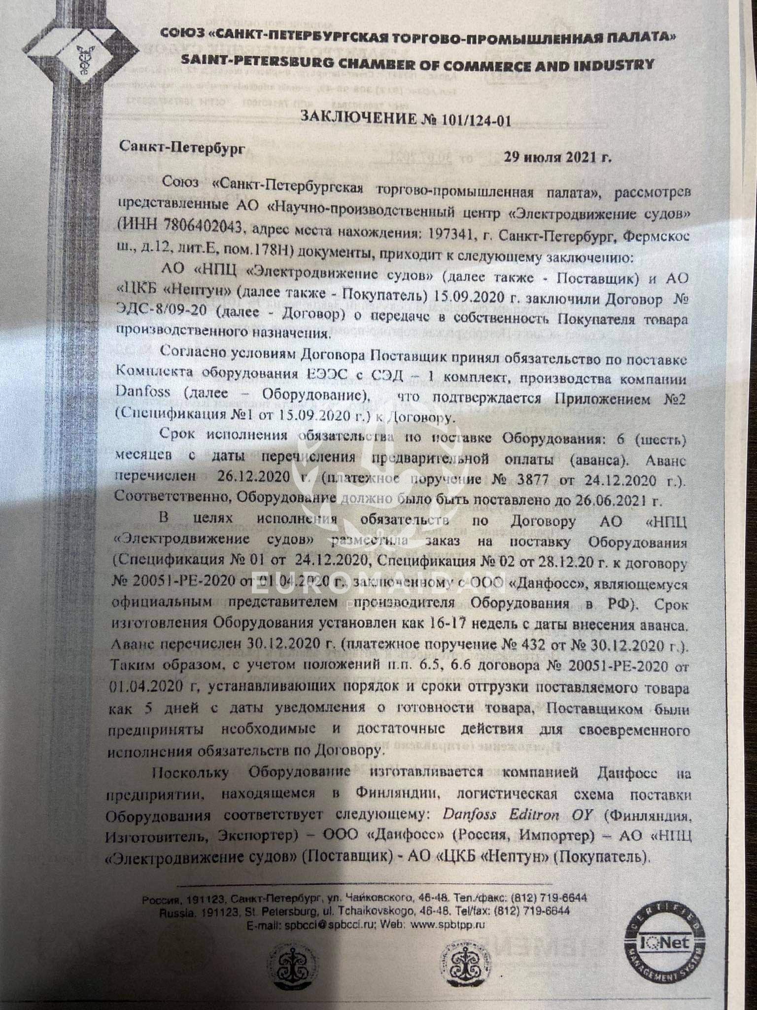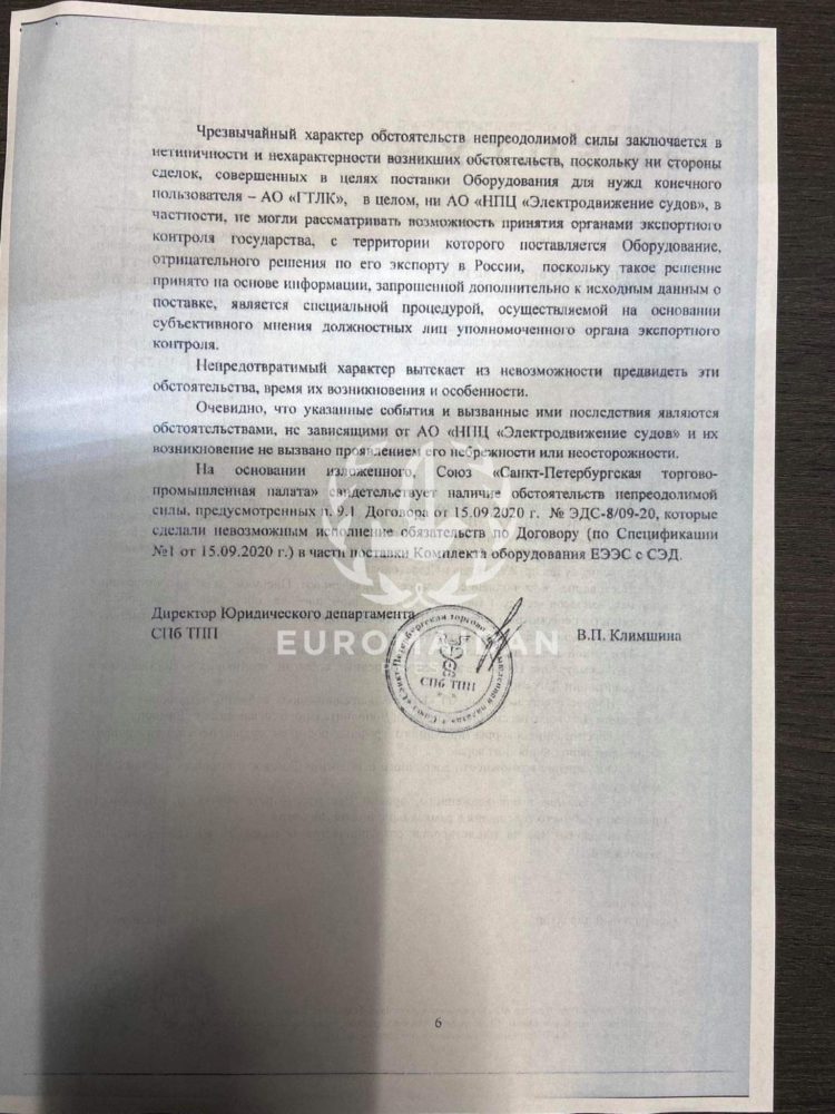 On 28 May 2021, Danfoss Ltd. informed the Center that the equipment is ready and needs only a license from Finland's Foreign Ministry to proceed on its journey. Then, on 10 June, Danfoss Ltd. told that it forwarded additional documents from the State transport leasing company to the Finnnish Foreign Ministry that claimed that the ships on which the engines will be installed are not going to be used in occupied Crimea.