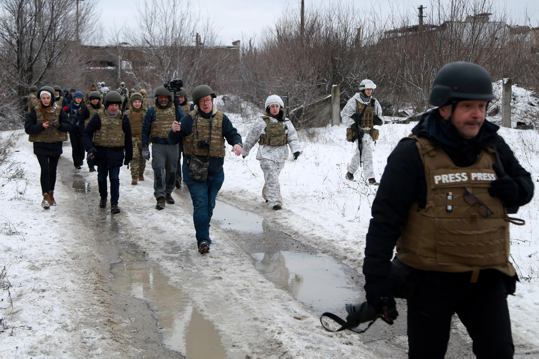Agence France-Presse, Associated Press, CNN, Reuters, Sky News, The Washington Post, and other media participated in the press tour, visiting positions of Ukrainian soldiers.