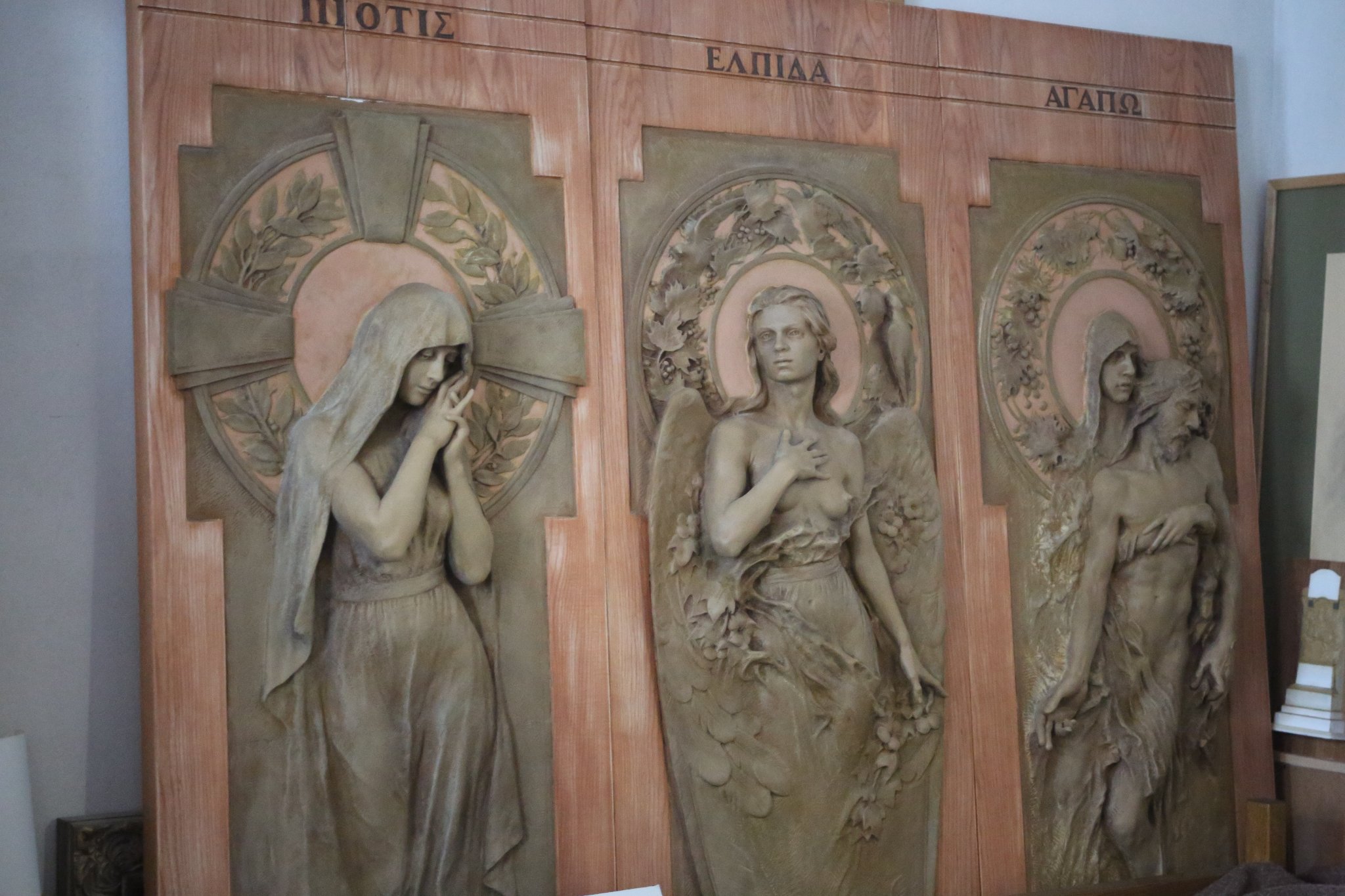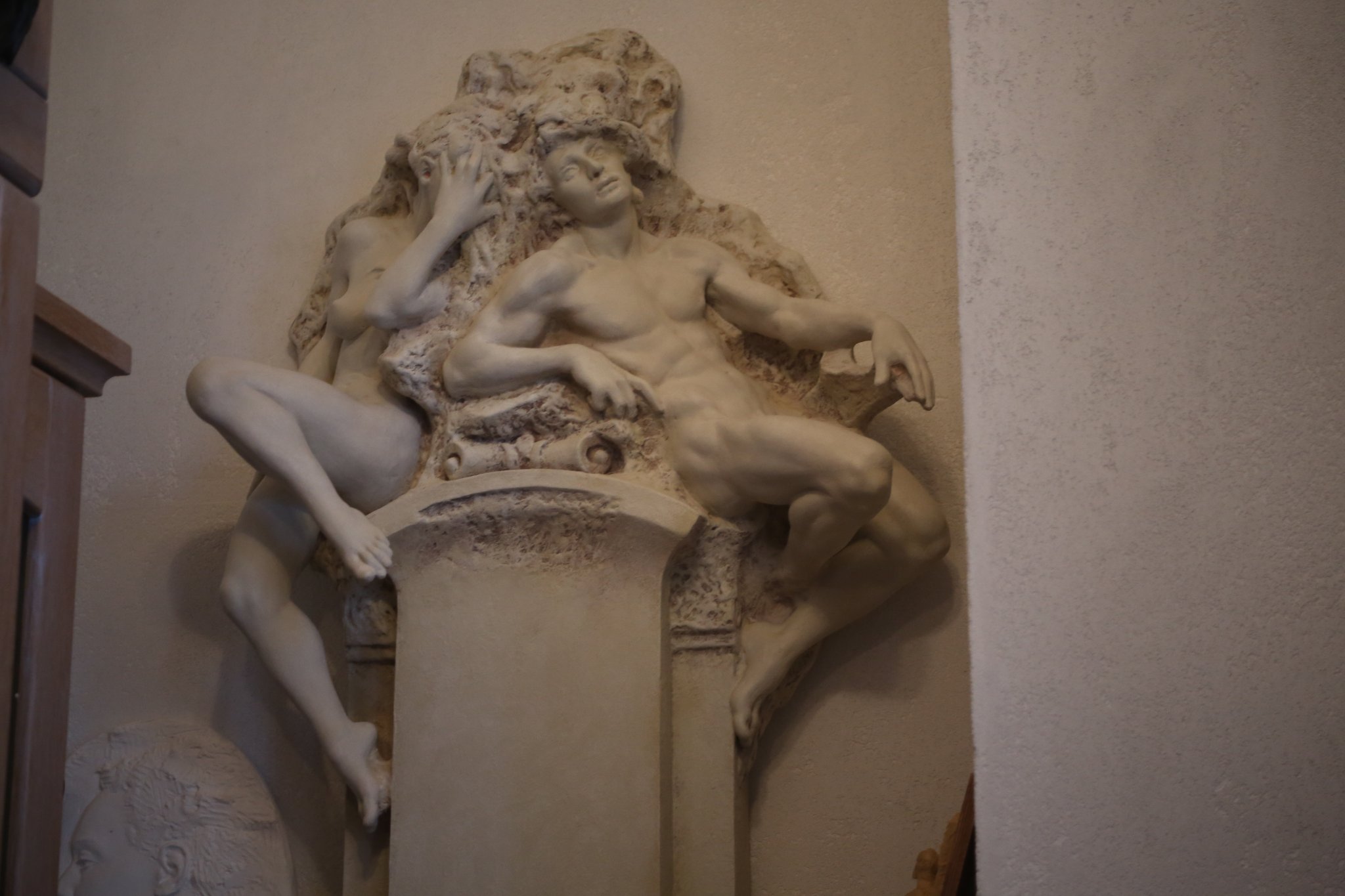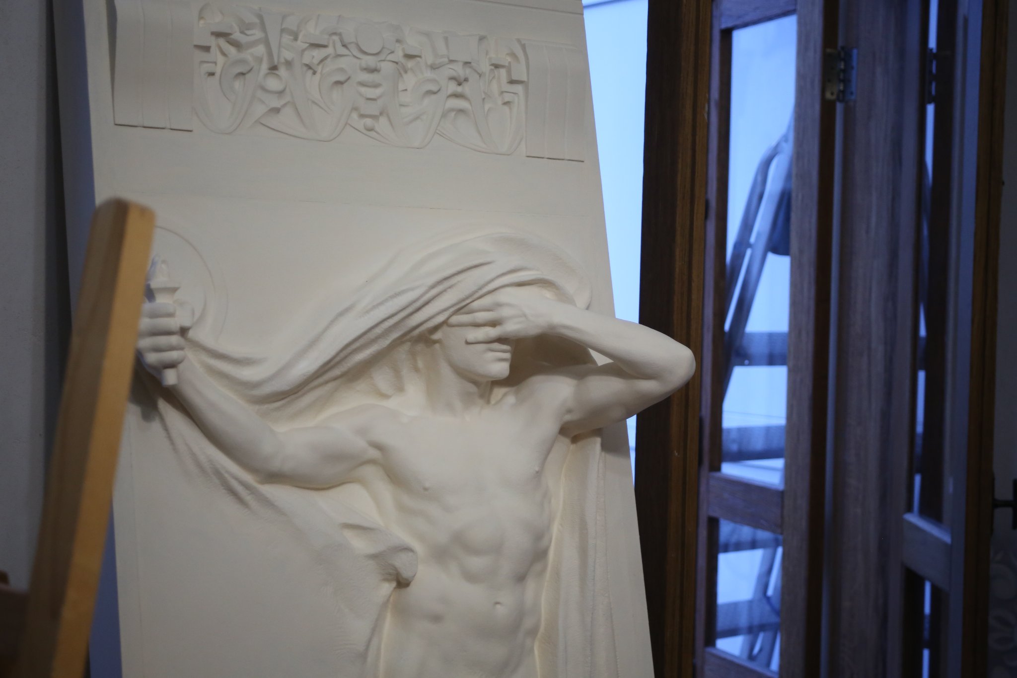 We were invited to accompany Kompanicheko to a meeting of Kyiv artists before our interview, where they took a 2-hour artist break amid the war to talk and sing songs. Among those present was Hryhoriy Lukyanenko, guitarist and composer for a number of Ukrainian folk-rock bands, including the iconic Ruthenia band from the 1990s. ""War is the continuation of politics," said Lukyanenko, "and politics is the continuation of culture." So, as a result, even during times of war, it is critical to foster culture. Because we are primarily fighting for our culture, which is distinct from that of Moscow. Several guys told me in 2014-15, 'If I hadn't listened to Ruthenia, I wouldn't have gone to fight.' So it works." Lukyanenko describes Kompanichenko as a genius, explaining that, unlike many artists, Kompanichenko found strength early in the war and managed to compose new songs about it despite the destruction and chaos. We listened to all of their songs in a circle, going from one artist to the next. Then, a group of friends gathered at the studio of Kyiv sculptor Bohdan Holoyad. Along with Kompanichenko and Lukianenko, there was Mykhailyna Skoryk-Shkarivska, Deputy Mayor of Bucha, as well as the military chaplain and other intellectuals and artists from Ukraine. Sculpture by Bohdan Holoyad, part of the memorial for his mother Marta Hai, servicemen of Ukrainian Insurgent Army during the WWII.