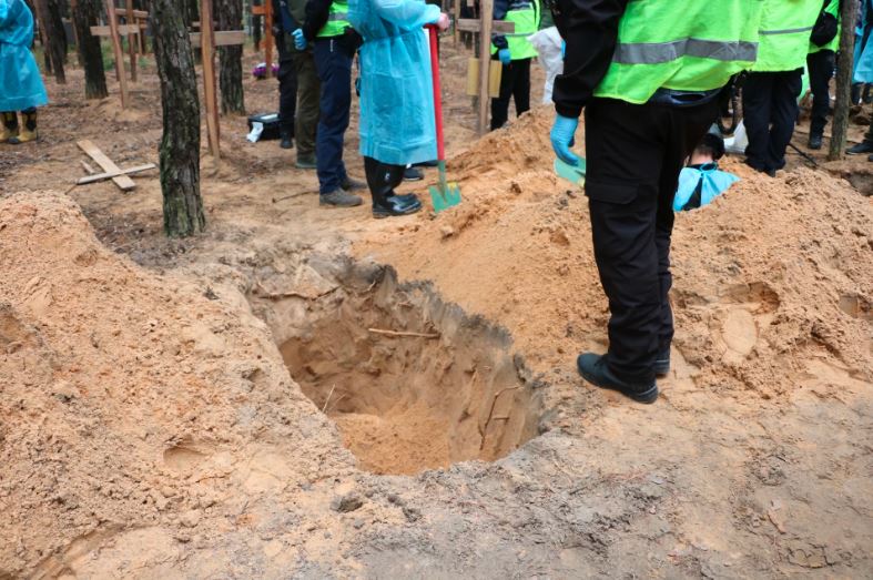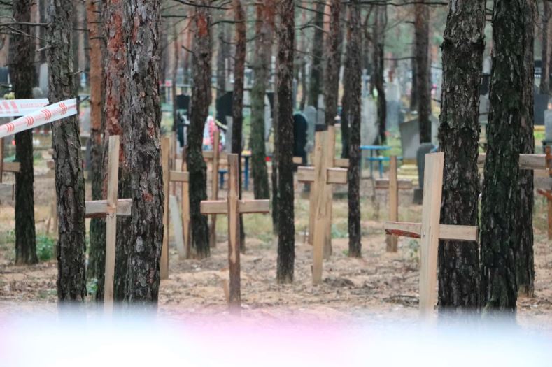 The bodies of roughly half a thousand Ukrainians have been discovered at this mass burial site, killed by the Russian occupiers. Most of the graves are nameless and some may have been there since March. The elderly, women, and children are among the buried civilians. Some lie wrapped in blankets, others are simply dressed in regular clothes.