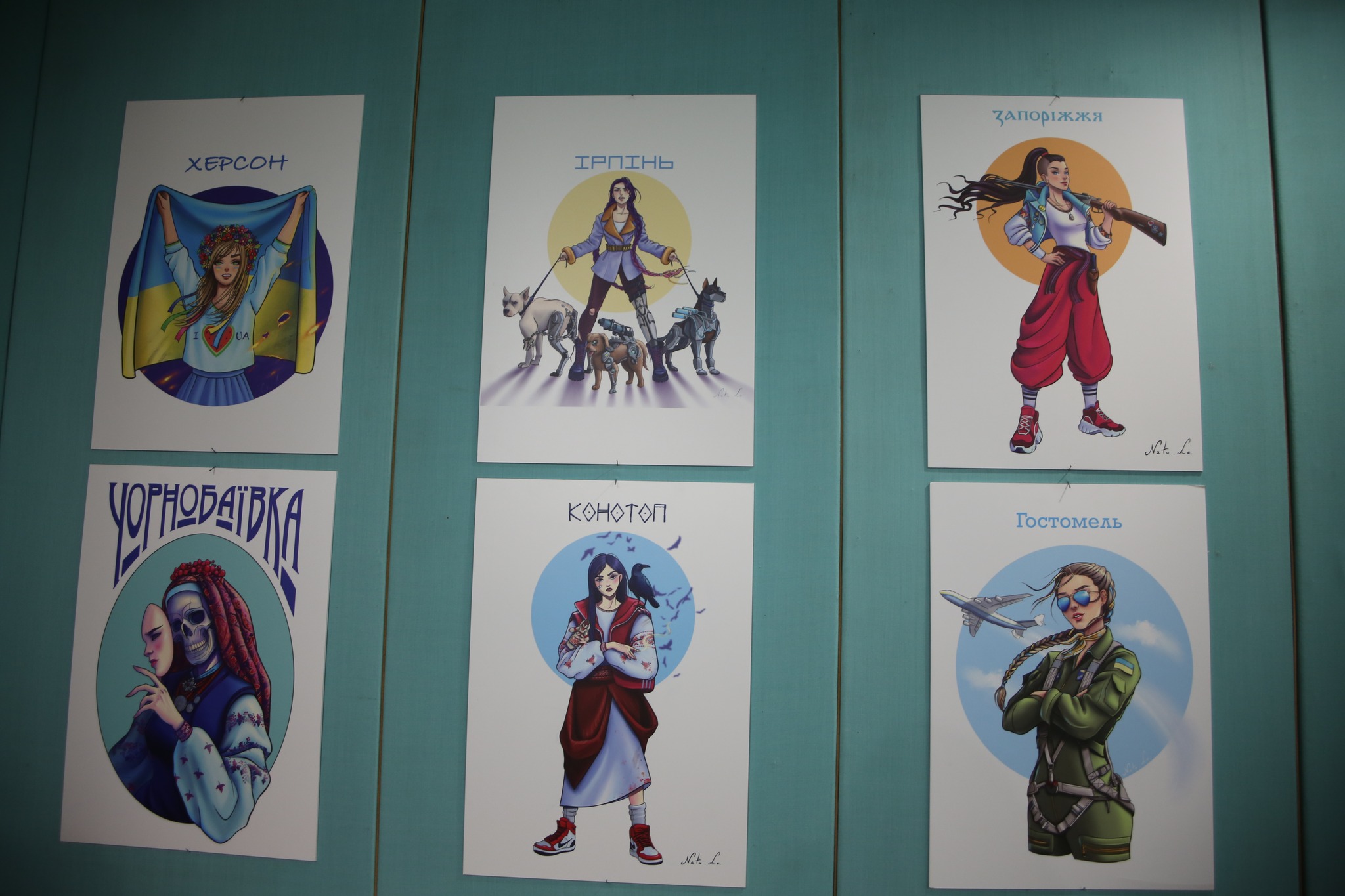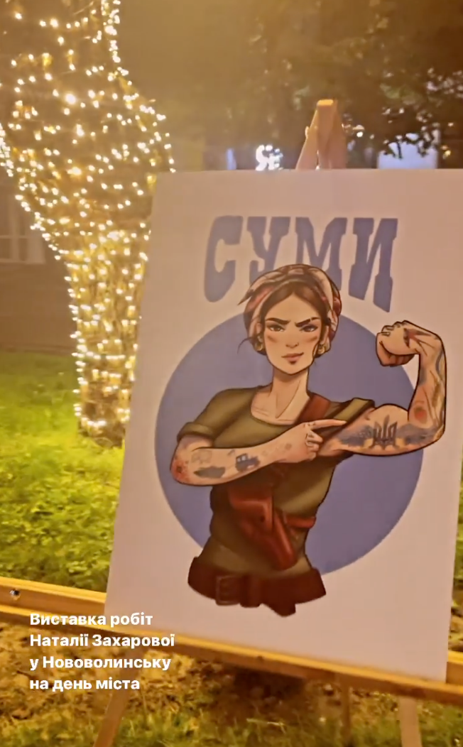 During the Russian invasion, Nataliya Zakharchenko from Bucha created paintings in the genre of graphic design dedicated to each Ukrainian city. Its main theme is Ukrainian resistance and invincibility.