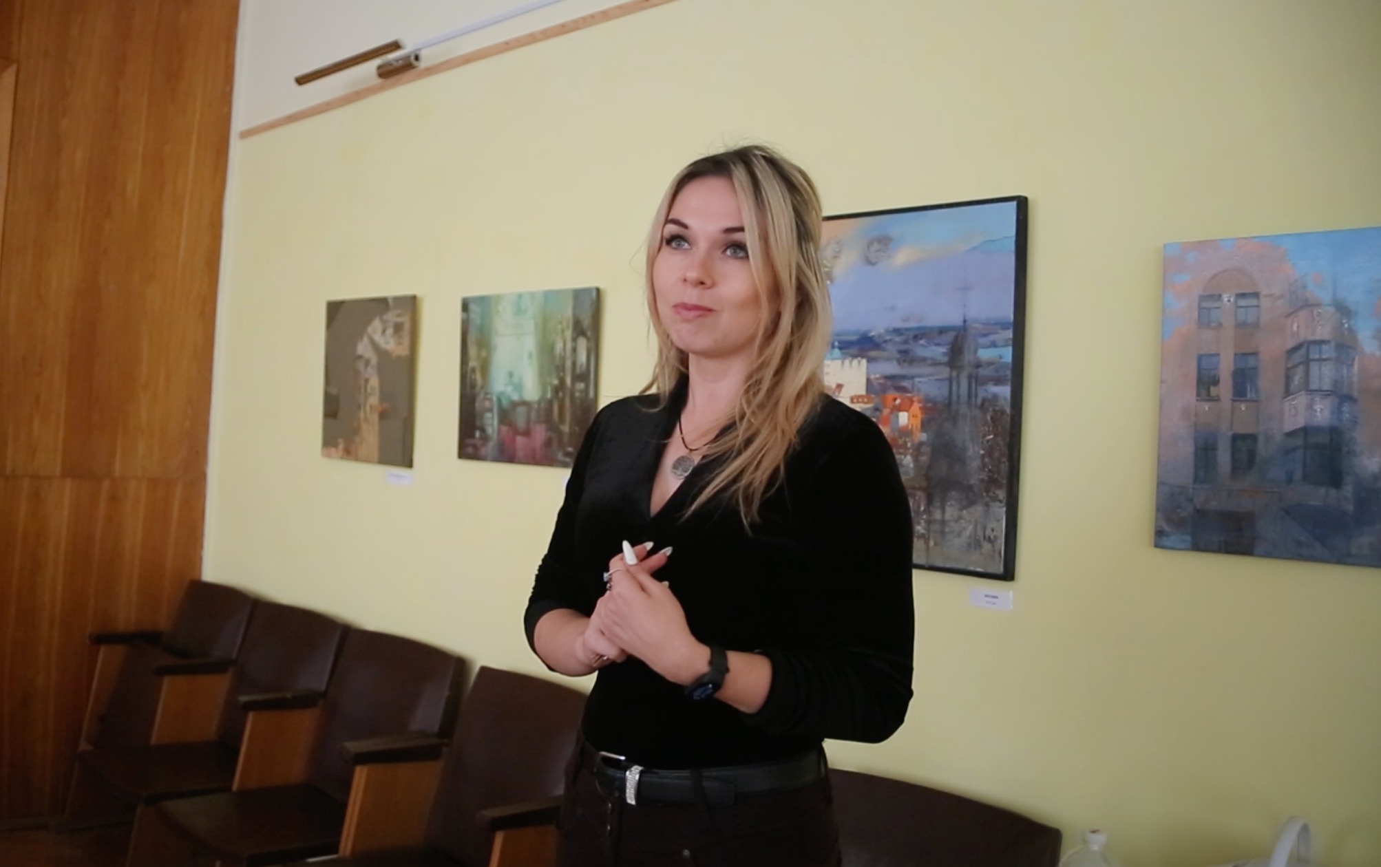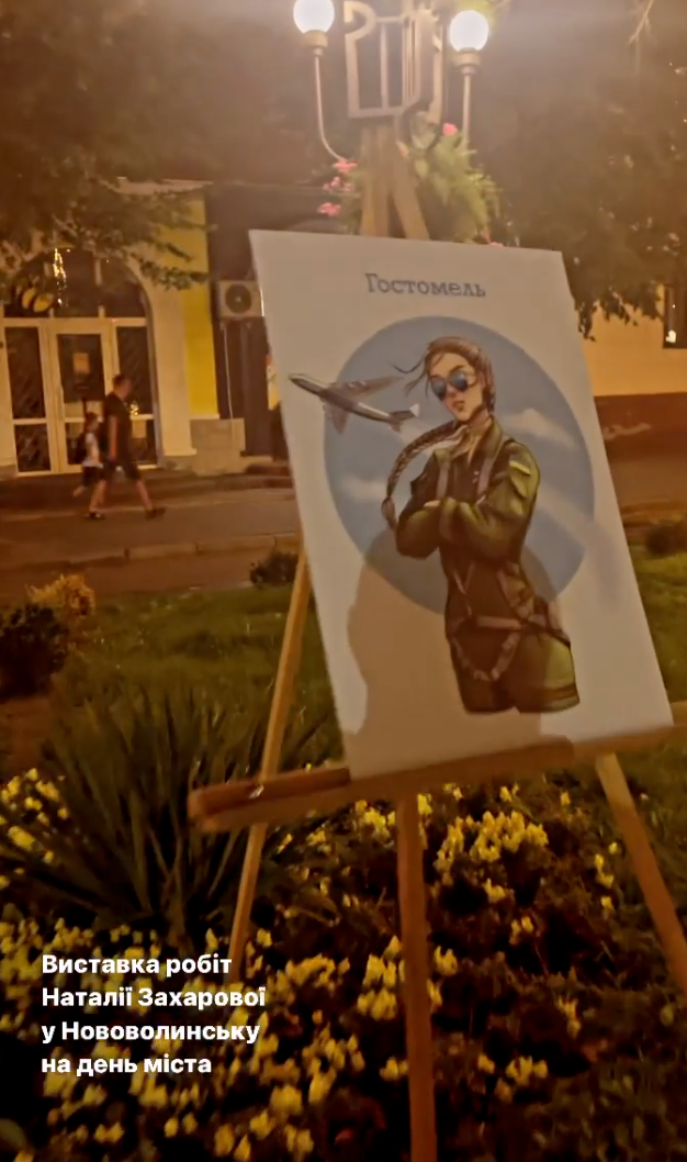 Initially, Nataliya’s paintings were displayed on the central avenues of Novovolynsk, “and it was just that all the displaced persons were taking pictures with paintings of their cities,” Iryna says, adding that the paintings were later moved to the museum. Zakharchenko initially published the pictures on her Instagram account under the name Nataliya Lee, and later the museum later agreed to have them printed in Novovolynsk.