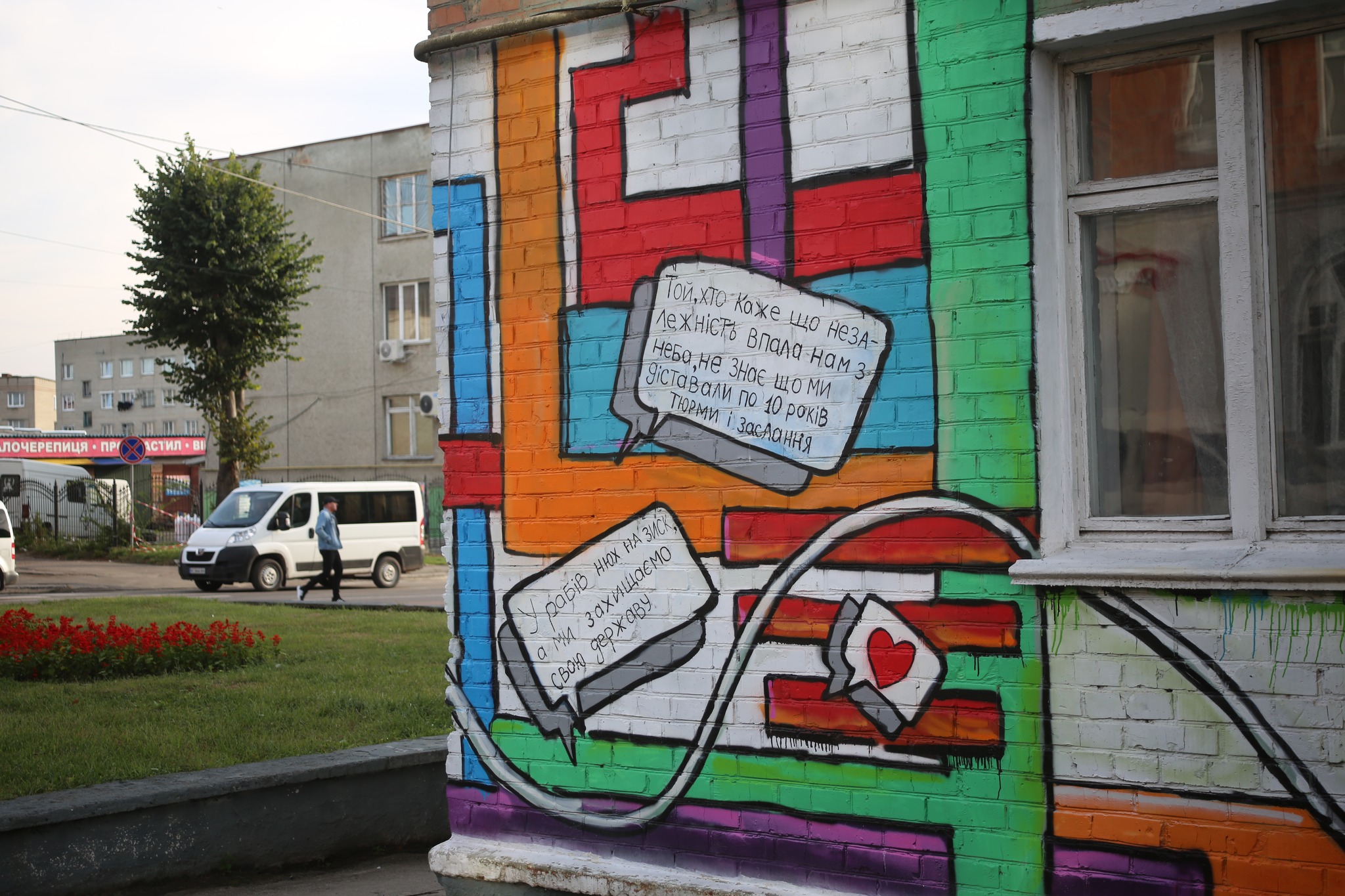 Their mural project Walls are not silent enriched the urban landscape with street art, focusing primarily on Ukrainian cultural and political themes. For instance, the mural about Ukrainian dissident Levko Lukyanenko includes his citation, "Those saying that [Ukraine] got our independence for granted do not know that we went through 10-year imprisonment and detention."
