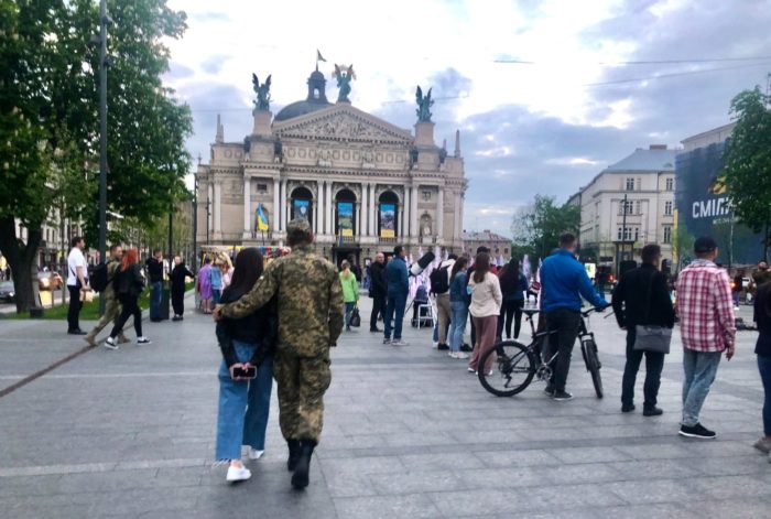 While residents load into the cars moving to the west of the country, columns of Ukrainian military vehicles head in the opposite direction “with very tense faces” to meet the aggressor army. At the same time, people of all ages and genders eager to defend their country sign up for the territorial defense forces and receive weapons in all the cities throughout Ukraine.