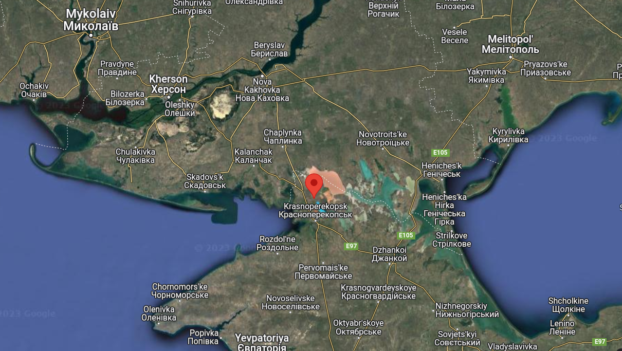 Russian troops have built two lines of trenches on the narrow isthmus leading to the peninsula, according to satellite images, Skhemy reports.