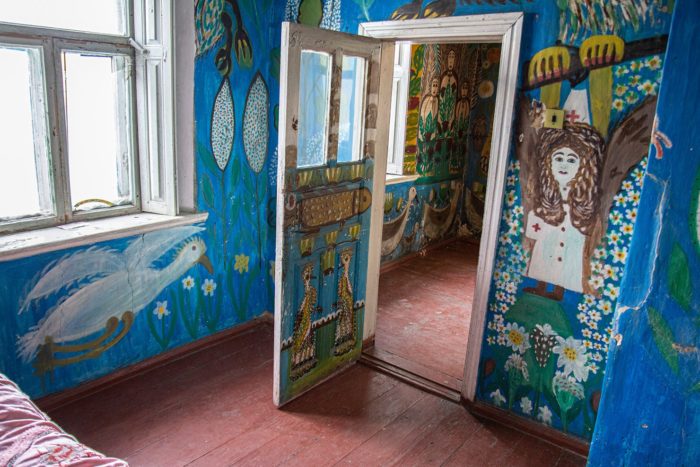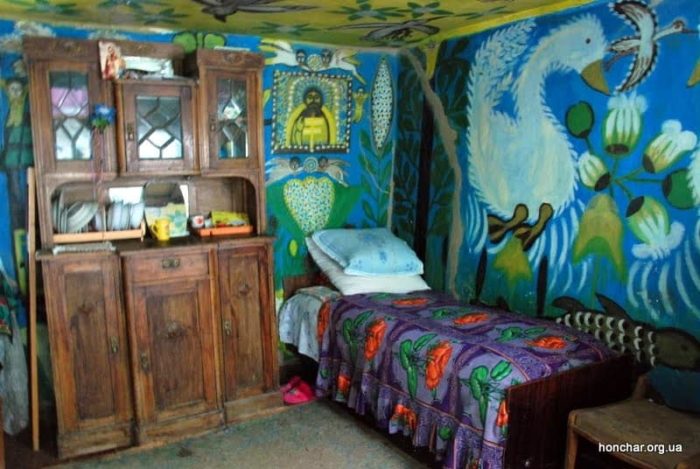 Polina Raiko’s house holds a special significance due to the fact that the artist herself adorned it with her own paintings. It stands as one of the most remarkable examples of Ukrainian naïve art, also known as brut art.