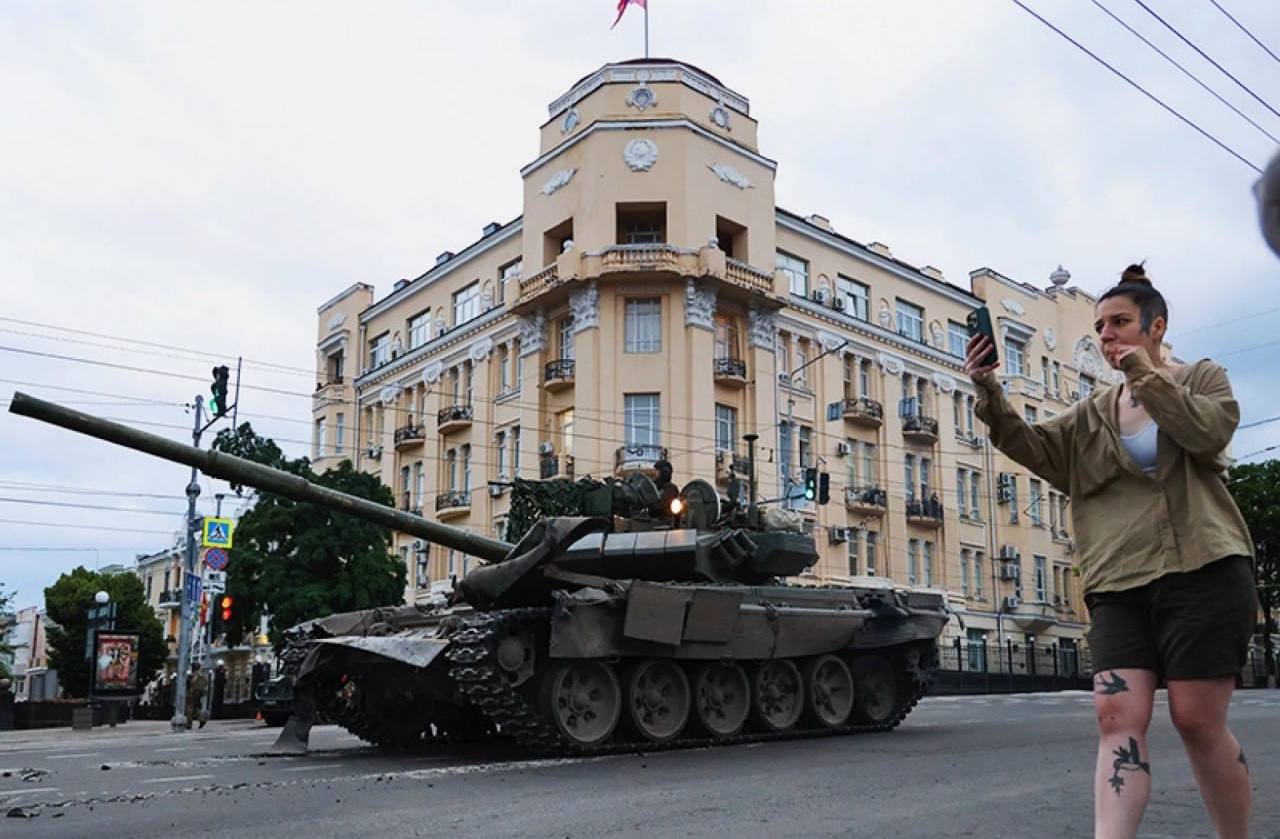 The video shows Wagner's military equipment near the Russian MoD's Southern Military HQ, and its fighters approaching the HQ