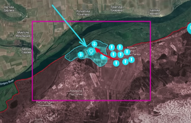 Ukrainians evaluated the situation and identified a weak spot in the Russian defense near Kozachi Laheri, Oleshky region, Kherson Oblast [the incursion here took place on 9 August - Ed.]