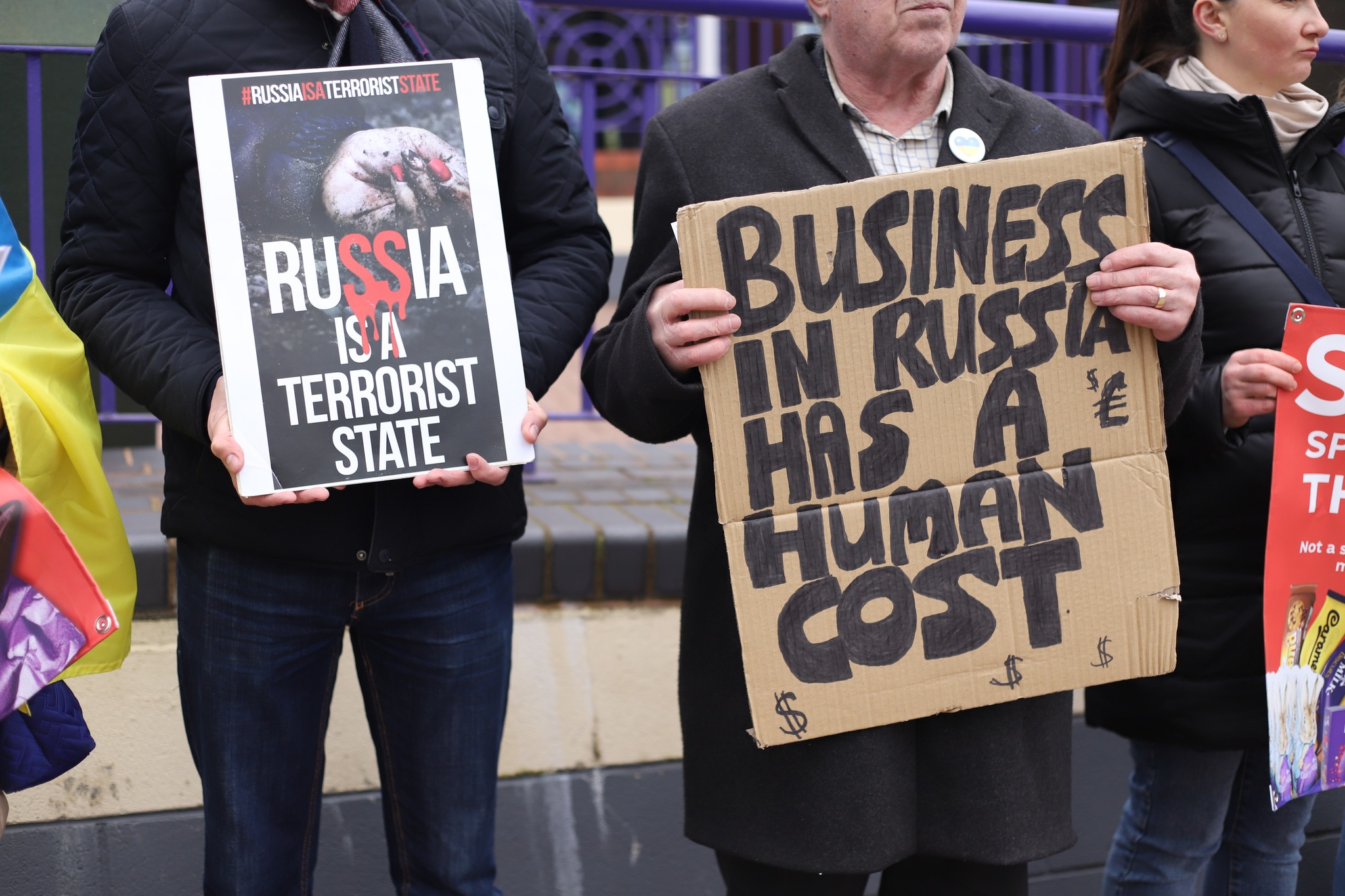 In a display of solidarity with Ukraine, demonstrators converged outside Cadbury World in Birmingham, UK, on 16 March to confront Mondelez International, the parent company of Cadbury, over its financial backing of the Russian government amidst the ongoing illegal invasion of Ukraine.