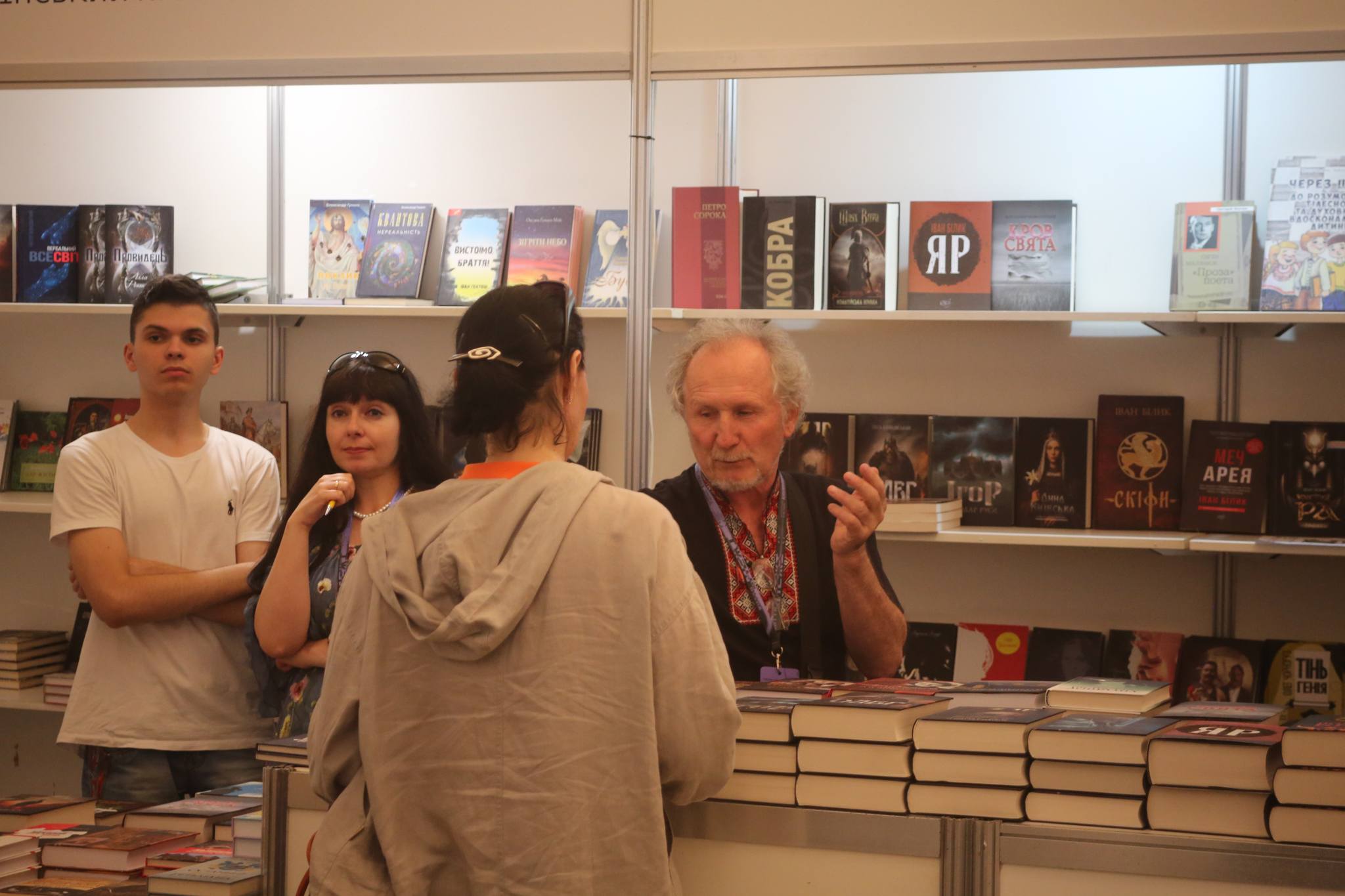 Visitors queuing to buy Ukrainian writer and serviceman Artem Chekh's new book, "Song of the Open Way," with his autograph, 31 May 2024. Photo Euromaidan Press