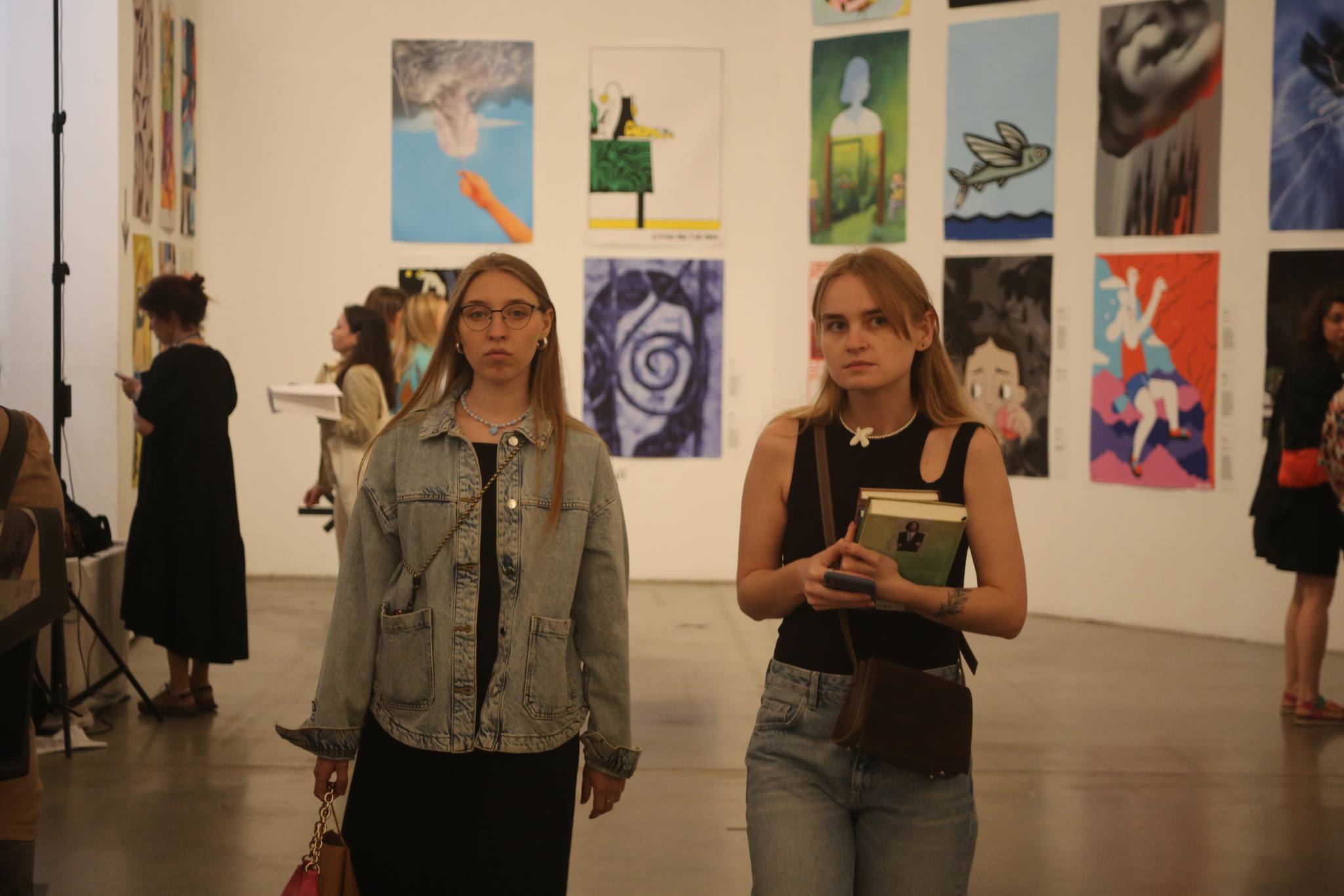 Visitors near the posters at the Kyiv Book Fair, 2024. Photo by Euromaidan Press.