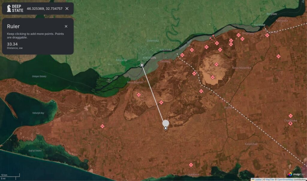 Lasar’s Group reportedly struck the multiple rocket launcher 33 km behind enemy positions in Kherson Oblast. The drones flew nearly 50 km in total to reach the target.