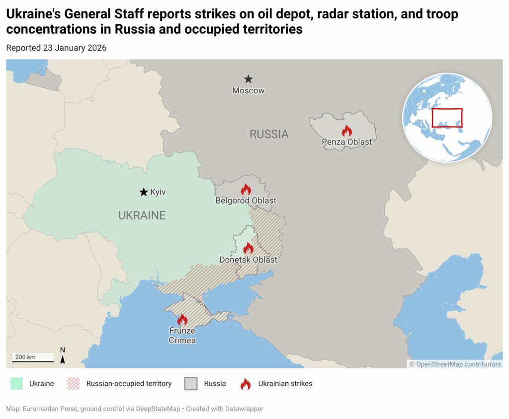 The strike adds to a string of Ukrainian attacks on Russian fuel infrastructure in January. Earlier this month, Ukrainian drones hit the Volgograd oil depot, a fuel train in occupied Crimea, and three Caspian Sea oil platforms over 950 km from the frontline.