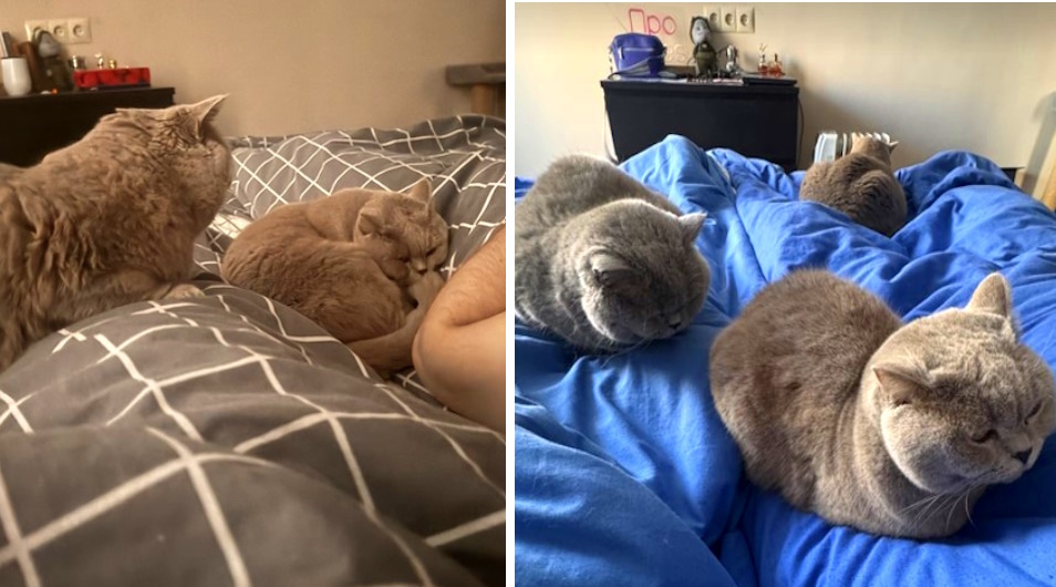 “They sleep next to us all the time,” he says. “It warms you not only physically. They’re warm, soft, especially when they climb onto you, but emotionally as well.”