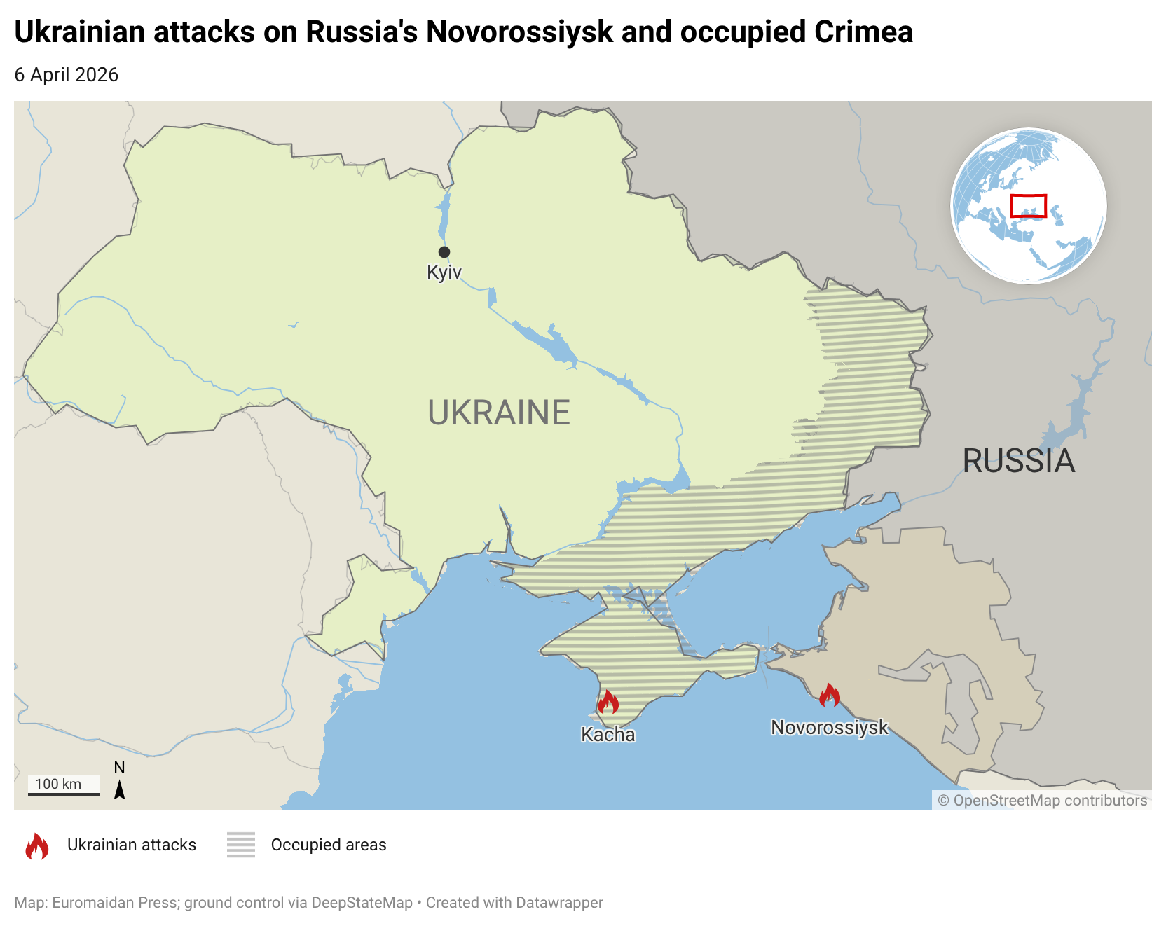 Ukraine's Defense Forces struck the Sheskharis oil terminal in Novorossiysk, Krasnodar Krai, and destroyed a Be-12 anti-submarine aircraft in occupied Crimea in a single overnight operation on 6 April, Ukraine's General Staff confirmed. OSINT channel CyberBoroshno identified three simultaneous hits at the terminal — including both main loading berths and the pipeline control infrastructure between them — that analysts say have halted export loading entirely. Later footage showed at least four distinct separate fires at the facility.