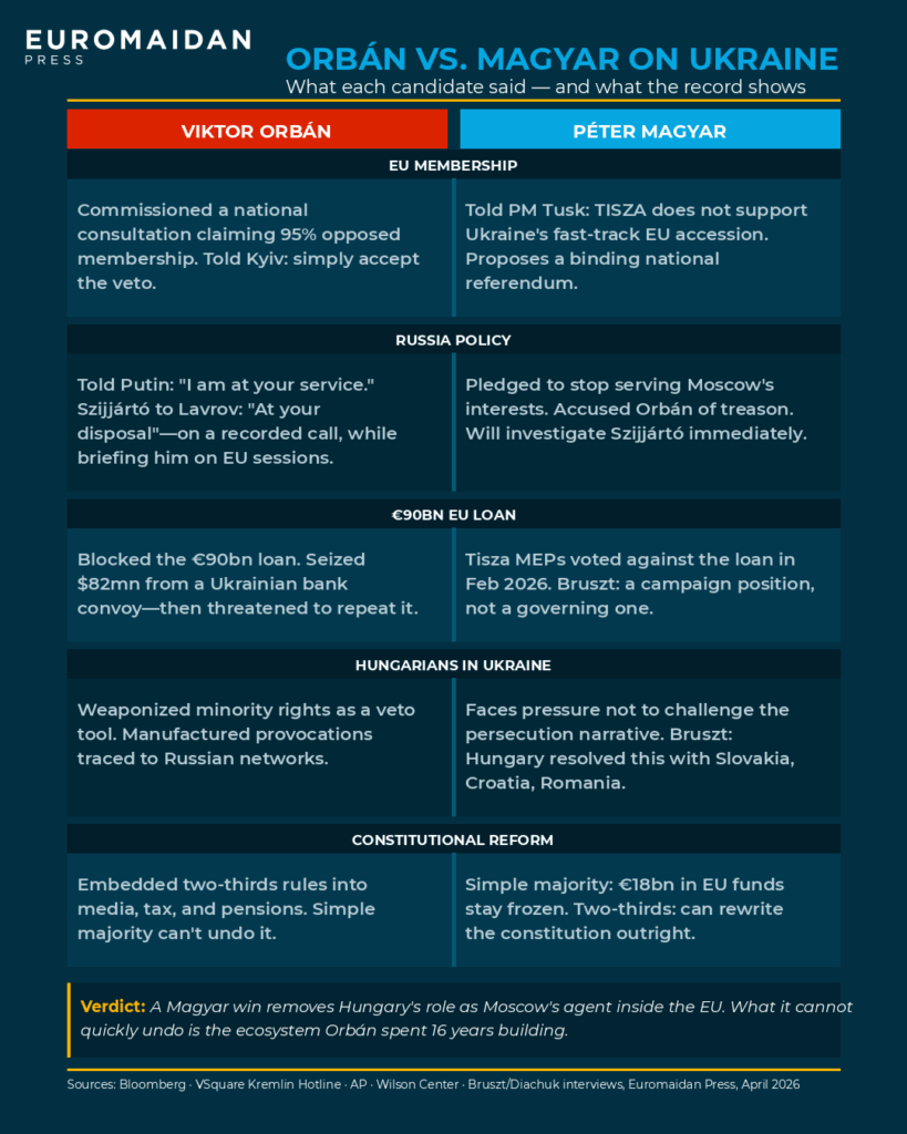 What separates Orbán and Magyar on Ukraine is not just rhetoric but policy—choices a new government would have to unwind. What follows is a short guide to where each candidate stands.
